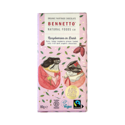 Bennetto Organic Dark Chocolate Raspberries in Dark 80g (cold)