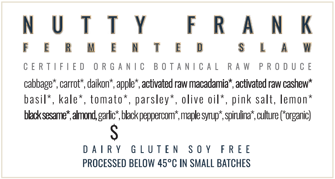 {"id":9431233986856,"title":"Botanical Cuisine Nutty Frank Fermented Slaw 325g (cold)","handle":"botanical-cuisine-nutty-frank-fermented-slaw-325g","description":"\u003cp\u003e\u003cspan\u003eThe Nutty Frank Fermented Slaw from Botanical Cuisine is a unique, probiotic-rich creation featuring a blend of nuts and fermented vegetables. This slaw is made with clean, raw ingredients. Its nutty flavour and crunchy texture make it a versatile addition to meals, perfect for salads, sandwiches, or as a side dish. This Nutty Frank fermented slaw offers a healthful, gourmet option, combining the benefits of fermentation with the richness of nuts.\u003c\/span\u003e\u003c\/p\u003e\n\u003ch5\u003eReviews\u003c\/h5\u003e\n\u003cp\u003eReviews go here\u003c\/p\u003e\n\u003ch5\u003eIngredients\u003c\/h5\u003e\n\u003cp\u003eAny images, tags, filters, product categories, and any other information on this website showing ingredients, nutrition panels, or allergy statements are for guidance only, as manufacturers often change their formulations without notice. Please contact the manufacturer for the most up-to-date ingredient information, or email us to confirm the ingredients of the stock currently on hand.\u003c\/p\u003e\n\u003ch5\u003eImportant Shipping Note\u003c\/h5\u003e\n\u003cdiv\u003e\n\u003cspan\u003eAll orders containing chilled products, frozen products and chocolates must include a Cooler to protect them in transit. The\u003c\/span\u003e\u003cspan\u003e \u003c\/span\u003e\u003cspan\u003eCooler\u003c\/span\u003e\u003cspan\u003e will automatically add to your order when a cold product is added to your shopping cart. \u003c\/span\u003e\u003cspan\u003eFrozen items may defrost in transit, we can not recommend re-freezing. \u003c\/span\u003e\u003cspan\u003eWe will select the correct size cooler for your order. Chilled orders can only be sent to certain areas, please refer to our \u003c\/span\u003e\u003ca href=\"https:\/\/www.crueltyfreeshop.com.au\/pages\/faq#refrid\" rel=\"noopener\" target=\"_blank\" data-saferedirecturl=\"https:\/\/www.google.com\/url?q=https:\/\/www.crueltyfreeshop.com.au\/pages\/faq%23refrid\u0026amp;source=gmail\u0026amp;ust=1664430462005000\u0026amp;usg=AOvVaw3YpBIvhTwoxQRA_PVqbP_L\"\u003eFAQ\u003c\/a\u003e\u003cspan\u003e or email us at \u003c\/span\u003e\u003ca href=\"mailto:online@vegangrocerystore.com.au\" rel=\"noopener\" target=\"_blank\"\u003eonline@vegangrocerystore.\u003cwbr\u003ecom.au\u003c\/wbr\u003e\u003c\/a\u003e\n\u003c\/div\u003e","published_at":"2025-09-15T16:33:54+10:00","created_at":"2024-09-09T09:46:35+10:00","vendor":"Botanical Cuisine","type":"General","tags":["Fermented Foods","Sydney Store"],"price":1853,"price_min":1853,"price_max":1853,"available":true,"price_varies":false,"compare_at_price":null,"compare_at_price_min":0,"compare_at_price_max":0,"compare_at_price_varies":false,"variants":[{"id":49201655382312,"title":"Default Title","option1":"Default Title","option2":null,"option3":null,"sku":"9346940003499","requires_shipping":true,"taxable":false,"featured_image":null,"available":true,"name":"Botanical Cuisine Nutty Frank Fermented Slaw 325g (cold)","public_title":null,"options":["Default Title"],"price":1853,"weight":0,"compare_at_price":null,"inventory_quantity":4,"inventory_management":"shopify","inventory_policy":"deny","barcode":null,"requires_selling_plan":false,"selling_plan_allocations":[]}],"images":["\/\/crueltyfreeshop.com.au\/cdn\/shop\/files\/BTCS1150R.jpg?v=1725839195","\/\/crueltyfreeshop.com.au\/cdn\/shop\/files\/Screenshot2025-11-21090323.png?v=1763676267","\/\/crueltyfreeshop.com.au\/cdn\/shop\/files\/Screenshot2025-11-21090306.png?v=1763676267"],"featured_image":"\/\/crueltyfreeshop.com.au\/cdn\/shop\/files\/BTCS1150R.jpg?v=1725839195","options":["Title"],"media":[{"alt":null,"id":40007234060584,"position":1,"preview_image":{"aspect_ratio":1.002,"height":599,"width":600,"src":"\/\/crueltyfreeshop.com.au\/cdn\/shop\/files\/BTCS1150R.jpg?v=1725839195"},"aspect_ratio":1.002,"height":599,"media_type":"image","src":"\/\/crueltyfreeshop.com.au\/cdn\/shop\/files\/BTCS1150R.jpg?v=1725839195","width":600},{"alt":null,"id":43020251726120,"position":2,"preview_image":{"aspect_ratio":1.032,"height":780,"width":805,"src":"\/\/crueltyfreeshop.com.au\/cdn\/shop\/files\/Screenshot2025-11-21090323.png?v=1763676267"},"aspect_ratio":1.032,"height":780,"media_type":"image","src":"\/\/crueltyfreeshop.com.au\/cdn\/shop\/files\/Screenshot2025-11-21090323.png?v=1763676267","width":805},{"alt":null,"id":43020251758888,"position":3,"preview_image":{"aspect_ratio":1.873,"height":606,"width":1135,"src":"\/\/crueltyfreeshop.com.au\/cdn\/shop\/files\/Screenshot2025-11-21090306.png?v=1763676267"},"aspect_ratio":1.873,"height":606,"media_type":"image","src":"\/\/crueltyfreeshop.com.au\/cdn\/shop\/files\/Screenshot2025-11-21090306.png?v=1763676267","width":1135}],"requires_selling_plan":false,"selling_plan_groups":[],"content":"\u003cp\u003e\u003cspan\u003eThe Nutty Frank Fermented Slaw from Botanical Cuisine is a unique, probiotic-rich creation featuring a blend of nuts and fermented vegetables. This slaw is made with clean, raw ingredients. Its nutty flavour and crunchy texture make it a versatile addition to meals, perfect for salads, sandwiches, or as a side dish. This Nutty Frank fermented slaw offers a healthful, gourmet option, combining the benefits of fermentation with the richness of nuts.\u003c\/span\u003e\u003c\/p\u003e\n\u003ch5\u003eReviews\u003c\/h5\u003e\n\u003cp\u003eReviews go here\u003c\/p\u003e\n\u003ch5\u003eIngredients\u003c\/h5\u003e\n\u003cp\u003eAny images, tags, filters, product categories, and any other information on this website showing ingredients, nutrition panels, or allergy statements are for guidance only, as manufacturers often change their formulations without notice. Please contact the manufacturer for the most up-to-date ingredient information, or email us to confirm the ingredients of the stock currently on hand.\u003c\/p\u0