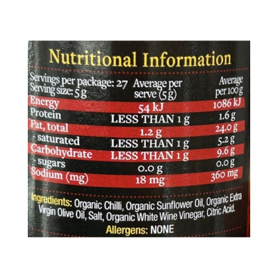 {"id":9486841315624,"title":"Chefs Choice Organic Calabrian Crushed Chillies - Extra Hot 135g","handle":"chefs-choice-organic-calabrian-crushed-chillies-extra-hot-135g","description":"\u003cp\u003e \u003c\/p\u003e\n\u003ch5\u003eReviews\u003c\/h5\u003e\n\u003cp\u003eReviews go here\u003c\/p\u003e\n\u003ch5\u003eIngredients\u003c\/h5\u003e\n\u003cp\u003eAny images, tags, filters, product categories, and any other information on this website showing ingredients, nutrition panels, or allergy statements are for guidance only, as manufacturers often change their formulations without notice. Please contact the manufacturer for the most up-to-date ingredient information, or email us to confirm the ingredients of the stock currently on hand.\u003c\/p\u003e","published_at":"2025-03-05T13:32:37+11:00","created_at":"2024-11-07T14:01:26+11:00","vendor":"Chef's Choice","type":"General","tags":["Cooking Sauces","Herbs \u0026 Spices","Sydney Store"],"price":819,"price_min":819,"price_max":819,"available":true,"price_varies":false,"compare_at_price":null,"compare_at_price_min":0,"compare_at_price_max":0,"compare_at_price_varies":false,"variants":[{"id":49486833385768,"title":"Default Title","option1":"Default Title","option2":null,"option3":null,"sku":"9339337304491","requires_shipping":true,"taxable":false,"featured_image":null,"available":true,"name":"Chefs Choice Organic Calabrian Crushed Chillies - Extra Hot 135g","public_title":null,"options":["Default Title"],"price":819,"weight":0,"compare_at_price":null,"inventory_quantity":2,"inventory_management":"shopify","inventory_policy":"deny","barcode":null,"requires_selling_plan":false,"selling_plan_allocations":[]}],"images":["\/\/crueltyfreeshop.com.au\/cdn\/shop\/files\/Certified-Organic-Calabrian-Crushed-Chillies-extra-hot.jpg?v=1730948486","\/\/crueltyfreeshop.com.au\/cdn\/shop\/files\/ChefsChoiceCalabrianChilliesExtraHot-NutritionalInformation.jpg?v=1764804561"],"featured_image":"\/\/crueltyfreeshop.com.au\/cdn\/shop\/files\/Certified-Organic-Calabrian-Crushed-Chillies-extra-hot.jpg?v=1730948486","options":["Title"],"media":[{"alt":null,"id":40433527488808,"position":1,"preview_image":{"aspect_ratio":1.0,"height":800,"width":800,"src":"\/\/crueltyfreeshop.com.au\/cdn\/shop\/files\/Certified-Organic-Calabrian-Crushed-Chillies-extra-hot.jpg?v=1730948486"},"aspect_ratio":1.0,"height":800,"media_type":"image","src":"\/\/crueltyfreeshop.com.au\/cdn\/shop\/files\/Certified-Organic-Calabrian-Crushed-Chillies-extra-hot.jpg?v=1730948486","width":800},{"alt":null,"id":43126980935976,"position":2,"preview_image":{"aspect_ratio":1.0,"height":400,"width":400,"src":"\/\/crueltyfreeshop.com.au\/cdn\/shop\/files\/ChefsChoiceCalabrianChilliesExtraHot-NutritionalInformation.jpg?v=1764804561"},"aspect_ratio":1.0,"height":400,"media_type":"image","src":"\/\/crueltyfreeshop.com.au\/cdn\/shop\/files\/ChefsChoiceCalabrianChilliesExtraHot-NutritionalInformation.jpg?v=1764804561","width":400}],"requires_selling_plan":false,"selling_plan_groups":[],"content":"\u003cp\u003e \u003c\/p\u003e\n\u003ch5\u003eReviews\u003c\/h5\u003e\n\u003cp\u003eReviews go here\u003c\/p\u003e\n\u003ch5\u003eIngredients\u003c\/h5\u003e\n\u003cp\u003eAny images, tags, filters, product categories, and any other information on this website showing ingredients, nutrition panels, or allergy statements are for guidance only, as manufacturers often change their formulations without notice. Please contact the manufacturer for the most up-to-date ingredient information, or email us to confirm the ingredients of the stock currently on hand.\u003c\/p\u003e"}