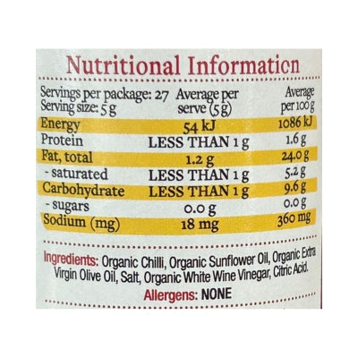 {"id":9486841577768,"title":"Chefs Choice Organic Calabrian Crushed Chillies - Hot 135g","handle":"chefs-choice-organic-calabrian-crushed-chillies-hot-135g","description":"\u003cp\u003e \u003c\/p\u003e\n\u003ch5\u003eReviews\u003c\/h5\u003e\n\u003cp\u003eReviews go here\u003c\/p\u003e\n\u003ch5\u003eIngredients\u003c\/h5\u003e\n\u003cp\u003eAny images, tags, filters, product categories, and any other information on this website showing ingredients, nutrition panels, or allergy statements are for guidance only, as manufacturers often change their formulations without notice. Please contact the manufacturer for the most up-to-date ingredient information, or email us to confirm the ingredients of the stock currently on hand.\u003c\/p\u003e","published_at":"2025-03-05T13:39:56+11:00","created_at":"2024-11-07T14:02:37+11:00","vendor":"Chef's Choice","type":"General","tags":["Cooking Sauces","Herbs \u0026 Spices","Sydney Store"],"price":819,"price_min":819,"price_max":819,"available":true,"price_varies":false,"compare_at_price":null,"compare_at_price_min":0,"compare_at_price_max":0,"compare_at_price_varies":false,"variants":[{"id":49486835712296,"title":"Default Title","option1":"Default Title","option2":null,"option3":null,"sku":"9339337304484","requires_shipping":true,"taxable":false,"featured_image":null,"available":true,"name":"Chefs Choice Organic Calabrian Crushed Chillies - Hot 135g","public_title":null,"options":["Default Title"],"price":819,"weight":0,"compare_at_price":null,"inventory_quantity":6,"inventory_management":"shopify","inventory_policy":"deny","barcode":null,"requires_selling_plan":false,"selling_plan_allocations":[]}],"images":["\/\/crueltyfreeshop.com.au\/cdn\/shop\/files\/Certified-Organic-Calabrian-Crushed-Chillies.jpg?v=1730948557","\/\/crueltyfreeshop.com.au\/cdn\/shop\/files\/ChefsChoiceCalabrianChillies-NutritionalInformation.jpg?v=1764804558"],"featured_image":"\/\/crueltyfreeshop.com.au\/cdn\/shop\/files\/Certified-Organic-Calabrian-Crushed-Chillies.jpg?v=1730948557","options":["Title"],"media":[{"alt":null,"id":40433531289896,"position":1,"preview_image":{"aspect_ratio":1.0,"height":800,"width":800,"src":"\/\/crueltyfreeshop.com.au\/cdn\/shop\/files\/Certified-Organic-Calabrian-Crushed-Chillies.jpg?v=1730948557"},"aspect_ratio":1.0,"height":800,"media_type":"image","src":"\/\/crueltyfreeshop.com.au\/cdn\/shop\/files\/Certified-Organic-Calabrian-Crushed-Chillies.jpg?v=1730948557","width":800},{"alt":null,"id":43126980837672,"position":2,"preview_image":{"aspect_ratio":1.0,"height":400,"width":400,"src":"\/\/crueltyfreeshop.com.au\/cdn\/shop\/files\/ChefsChoiceCalabrianChillies-NutritionalInformation.jpg?v=1764804558"},"aspect_ratio":1.0,"height":400,"media_type":"image","src":"\/\/crueltyfreeshop.com.au\/cdn\/shop\/files\/ChefsChoiceCalabrianChillies-NutritionalInformation.jpg?v=1764804558","width":400}],"requires_selling_plan":false,"selling_plan_groups":[],"content":"\u003cp\u003e \u003c\/p\u003e\n\u003ch5\u003eReviews\u003c\/h5\u003e\n\u003cp\u003eReviews go here\u003c\/p\u003e\n\u003ch5\u003eIngredients\u003c\/h5\u003e\n\u003cp\u003eAny images, tags, filters, product categories, and any other information on this website showing ingredients, nutrition panels, or allergy statements are for guidance only, as manufacturers often change their formulations without notice. Please contact the manufacturer for the most up-to-date ingredient information, or email us to confirm the ingredients of the stock currently on hand.\u003c\/p\u003e"}