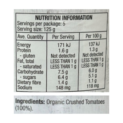 {"id":9486848426280,"title":"Chefs Choice Organic Passata - Rustica Crushed Tomatoes 680g","handle":"chefs-choice-organic-passata-rustica-crushed-tomatoes-680g","description":"\u003cp\u003e \u003c\/p\u003e\n\u003ch5\u003eReviews\u003c\/h5\u003e\n\u003cp\u003eReviews go here\u003c\/p\u003e\n\u003ch5\u003eIngredients\u003c\/h5\u003e\n\u003cp\u003eAny images, tags, filters, product categories, and any other information on this website showing ingredients, nutrition panels, or allergy statements are for guidance only, as manufacturers often change their formulations without notice. Please contact the manufacturer for the most up-to-date ingredient information, or email us to confirm the ingredients of the stock currently on hand.\u003c\/p\u003e","published_at":"2025-07-16T15:02:02+10:00","created_at":"2024-11-07T14:30:35+11:00","vendor":"Chef's Choice","type":"General","tags":["Cooking Sauces","Sydney Store"],"price":478,"price_min":478,"price_max":478,"available":true,"price_varies":false,"compare_at_price":null,"compare_at_price_min":0,"compare_at_price_max":0,"compare_at_price_varies":false,"variants":[{"id":49486877163816,"title":"Default Title","option1":"Default Title","option2":null,"option3":null,"sku":"9339337006913","requires_shipping":true,"taxable":false,"featured_image":null,"available":true,"name":"Chefs Choice Organic Passata - Rustica Crushed Tomatoes 680g","public_title":null,"options":["Default Title"],"price":478,"weight":0,"compare_at_price":null,"inventory_quantity":2,"inventory_management":"shopify","inventory_policy":"deny","barcode":null,"requires_selling_plan":false,"selling_plan_allocations":[]}],"images":["\/\/crueltyfreeshop.com.au\/cdn\/shop\/files\/Organic-Passata-Rustica-680g.jpg?v=1730950235","\/\/crueltyfreeshop.com.au\/cdn\/shop\/files\/Chef_sChoicePassattaRustic-NutritionalInformation.jpg?v=1764811334"],"featured_image":"\/\/crueltyfreeshop.com.au\/cdn\/shop\/files\/Organic-Passata-Rustica-680g.jpg?v=1730950235","options":["Title"],"media":[{"alt":null,"id":40433599971624,"position":1,"preview_image":{"aspect_ratio":1.0,"height":800,"width":800,"src":"\/\/crueltyfreeshop.com.au\/cdn\/shop\/files\/Organic-Passata-Rustica-680g.jpg?v=1730950235"},"aspect_ratio":1.0,"height":800,"media_type":"image","src":"\/\/crueltyfreeshop.com.au\/cdn\/shop\/files\/Organic-Passata-Rustica-680g.jpg?v=1730950235","width":800},{"alt":null,"id":43127191208232,"position":2,"preview_image":{"aspect_ratio":1.0,"height":400,"width":400,"src":"\/\/crueltyfreeshop.com.au\/cdn\/shop\/files\/Chef_sChoicePassattaRustic-NutritionalInformation.jpg?v=1764811334"},"aspect_ratio":1.0,"height":400,"media_type":"image","src":"\/\/crueltyfreeshop.com.au\/cdn\/shop\/files\/Chef_sChoicePassattaRustic-NutritionalInformation.jpg?v=1764811334","width":400}],"requires_selling_plan":false,"selling_plan_groups":[],"content":"\u003cp\u003e \u003c\/p\u003e\n\u003ch5\u003eReviews\u003c\/h5\u003e\n\u003cp\u003eReviews go here\u003c\/p\u003e\n\u003ch5\u003eIngredients\u003c\/h5\u003e\n\u003cp\u003eAny images, tags, filters, product categories, and any other information on this website showing ingredients, nutrition panels, or allergy statements are for guidance only, as manufacturers often change their formulations without notice. Please contact the manufacturer for the most up-to-date ingredient information, or email us to confirm the ingredients of the stock currently on hand.\u003c\/p\u003e"}