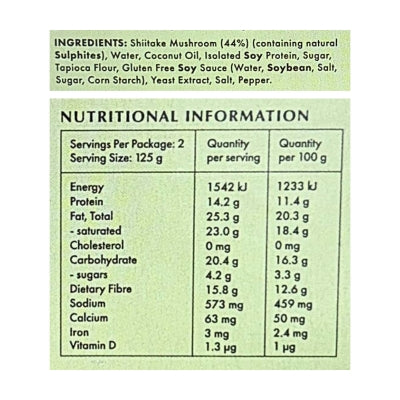{"id":4918673571977,"title":"Fable Food Co Mushroom Meat 1kg (cold)","handle":"fablefoodcomushroommeat1kgcold-case-15","description":"\u003cp\u003eDelicious meat substitute made from Shiitake mushrooms, coconut oil, soy protein and natural colours and flavours. Use it in all the same ways as braised beef, pulled pork and in some new ways too! High in dietary fibre, pre-biotics and packed with nutrients. It’s delicious, healthy and 100% plant and mushroom based!\u003c\/p\u003e\n\u003c!-- TABS --\u003e\n\u003ch5\u003eReviews\u003c\/h5\u003e\n\u003cp\u003eReviews go here\u003c\/p\u003e\n\u003ch5\u003eIngredients\u003c\/h5\u003e\n\u003cp\u003eAny images, tags, filters, product categories, and any other information on this website showing ingredients, nutrition panels, or allergy statements are for guidance only, as manufacturers often change their formulations without notice. Please contact the manufacturer for the most up-to-date ingredient information, or email us to confirm the ingredients of the stock currently on hand.\u003c\/p\u003e\n\u003ch5\u003eImportant Shipping Note\u003c\/h5\u003e\n\u003cdiv\u003e\n\u003cspan\u003eAll orders containing chilled products, frozen products and chocolates must include a Cooler to protect them in transit. The\u003c\/span\u003e\u003cspan\u003e \u003c\/span\u003e\u003cspan\u003eCooler\u003c\/span\u003e\u003cspan\u003e will automatically add to your order when a cold product is added to your shopping cart. \u003c\/span\u003e\u003cspan\u003eFrozen items may defrost in transit, we can not recommend re-freezing. \u003c\/span\u003e\u003cspan\u003eWe will select the correct size cooler for your order. Chilled orders can only be sent to certain areas, please refer to our \u003c\/span\u003e\u003ca href=\"https:\/\/www.crueltyfreeshop.com.au\/pages\/faq#refrid\" rel=\"noopener\" target=\"_blank\" data-saferedirecturl=\"https:\/\/www.google.com\/url?q=https:\/\/www.crueltyfreeshop.com.au\/pages\/faq%23refrid\u0026amp;source=gmail\u0026amp;ust=1664430462005000\u0026amp;usg=AOvVaw3YpBIvhTwoxQRA_PVqbP_L\"\u003eFAQ\u003c\/a\u003e\u003cspan\u003e or email us at \u003c\/span\u003e\u003ca href=\"mailto:online@vegangrocerystore.com.au\" rel=\"noopener\" target=\"_blank\"\u003eonline@vegangrocerystore.\u003cwbr\u003ecom.au\u003c\/wbr\u003e\u003c\/a\u003e\n\u003c\/div\u003e\n\u003c!-- \/TABS --\u003e","published_at":"2023-03-29T11:59:00+11:00","created_at":"2020-04-21T12:40:20+10:00","vendor":"Fable Food Co","type":"Refrig food (GST Free)","tags":["Pork","Sydney Store"],"price":2375,"price_min":2375,"price_max":2375,"available":true,"price_varies":false,"compare_at_price":null,"compare_at_price_min":0,"compare_at_price_max":0,"compare_at_price_varies":false,"variants":[{"id":33482896539785,"title":"Default Title","option1":"Default Title","option2":null,"option3":null,"sku":"9369998225712","requires_shipping":true,"taxable":false,"featured_image":null,"available":true,"name":"Fable Food Co Mushroom Meat 1kg (cold)","public_title":null,"options":["Default Title"],"price":2375,"weight":1000,"compare_at_price":null,"inventory_quantity":1,"inventory_management":"shopify","inventory_policy":"deny","barcode":"","requires_selling_plan":false,"selling_plan_allocations":[]}],"images":["\/\/crueltyfreeshop.com.au\/cdn\/shop\/files\/FBL2010R.jpg?v=1763349630","\/\/crueltyfreeshop.com.au\/cdn\/shop\/files\/Fable-NutritionalInformation_d9efda4c-2a3c-4ef3-b37f-c493b2a3e45a.jpg?v=1764728427"],"featured_image":"\/\/crueltyfreeshop.com.au\/cdn\/shop\/files\/FBL2010R.jpg?v=1763349630","options":["Title"],"media":[{"alt":null,"id":42983892713768,"position":1,"preview_image":{"aspect_ratio":1.0,"height":400,"width":400,"src":"\/\/crueltyfreeshop.com.au\/cdn\/shop\/files\/FBL2010R.jpg?v=1763349630"},"aspect_ratio":1.0,"height":400,"media_type":"image","src":"\/\/crueltyfreeshop.com.au\/cdn\/shop\/files\/FBL2010R.jpg?v=1763349630","width":400},{"alt":null,"id":43121734680872,"position":2,"preview_image":{"aspect_ratio":1.0,"height":400,"width":400,"src":"\/\/crueltyfreeshop.com.au\/cdn\/shop\/files\/Fable-NutritionalInformation_d9efda4c-2a3c-4ef3-b37f-c493b2a3e45a.jpg?v=1764728427"},"aspect_ratio":1.0,"height":400,"media_type":"image","src":"\/\/crueltyfreeshop.com.au\/cdn\/shop\/files\/Fable-NutritionalInformation_d9efda4c-2a3c-4ef3-b37f-c493b2a3e45a.jpg?v=1764728427","width":400}],"requires_selling_plan":false,"selling_plan_groups":[],"content":"\u003cp\u003eDelicious meat substitute made from Shiitake mushrooms, coconut oil, soy protein and natural colours and flavours. Use it in all the same ways as braised beef, pulled pork and in some new ways too! High in dietary fibre, pre-biotics and packed with nutrients. It’s delicious, healthy and 100% plant and mushroom based!\u003c\/p\u003e\n\u003c!-- TABS --\u003e\n\u003ch5\u003eReviews\u003c\/h5\u003e\n\u003cp\u003eReviews go here\u003c\/p\u003e\n\u003ch5\u003eIngredients\u003c\/h5\u003e\n\u003cp\u003eAny images, tags, filters, product categories, and any other information on this website showing ingredients, nutrition panels, or allergy statements are for guidance only, as manufacturers often change their formulations without notice. Please contact the manufacturer for the most up-to-date ingredient information, or email us to confirm the ingredients of the stock currently on hand.\u003c\/p\u003e\n\u003ch5\u003eImportant Shipping Note\u003c\/h5\u003e\n\u003cdiv\u003e\n\u003cspan\u003eAll orders containing chilled products, frozen products and chocolates must include a Cooler to protect them in transit. The\u003c\/span\u003e\u003cspan\u003e \u003c\/span\u003e\u003cspan\u003eCooler\u003c\/span\u003e\u003cspan\u003e will automatically add to your order when a cold product is added to your shopping cart. \u003c\/span\u003e\u003cspan\u003eFrozen items may defrost in transit, we can not recommend re-freezing. \u003c\/span\u003e\u003cspan\u003eWe will select the correct size cooler for your order. Chilled orders can only be sent to certain areas, p