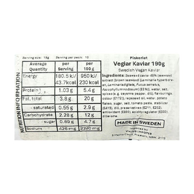 {"id":10102647292200,"title":"Fiskeriat Vegiar 190g","handle":"fiskeriat-vegiar-190g","description":"","published_at":"2025-12-16T09:39:38+11:00","created_at":"2025-12-16T09:39:37+11:00","vendor":"Not specified","type":"","tags":["Seafood","Sydney Store"],"price":799,"price_min":799,"price_max":799,"available":true,"price_varies":false,"compare_at_price":null,"compare_at_price_min":0,"compare_at_price_max":0,"compare_at_price_varies":false,"variants":[{"id":51273623961896,"title":"Default Title","option1":"Default Title","option2":null,"option3":null,"sku":"7350020103605","requires_shipping":true,"taxable":true,"featured_image":null,"available":true,"name":"Fiskeriat Vegiar 190g","public_title":null,"options":["Default Title"],"price":799,"weight":0,"compare_at_price":null,"inventory_quantity":9,"inventory_management":"shopify","inventory_policy":"deny","barcode":null,"requires_selling_plan":false,"selling_plan_allocations":[]}],"images":["\/\/crueltyfreeshop.com.au\/cdn\/shop\/files\/Vegiar.jpg?v=1765838380","\/\/crueltyfreeshop.com.au\/cdn\/shop\/files\/Vegiar-NutritionalInfo.jpg?v=1768261072"],"featured_image":"\/\/crueltyfreeshop.com.au\/cdn\/shop\/files\/Vegiar.jpg?v=1765838380","options":["Title"],"media":[{"alt":null,"id":43185504289064,"position":1,"preview_image":{"aspect_ratio":1.0,"height":400,"width":400,"src":"\/\/crueltyfreeshop.com.au\/cdn\/shop\/files\/Vegiar.jpg?v=1765838380"},"aspect_ratio":1.0,"height":400,"media_type":"image","src":"\/\/crueltyfreeshop.com.au\/cdn\/shop\/files\/Vegiar.jpg?v=1765838380","width":400},{"alt":null,"id":43297340588328,"position":2,"preview_image":{"aspect_ratio":1.0,"height":400,"width":400,"src":"\/\/crueltyfreeshop.com.au\/cdn\/shop\/files\/Vegiar-NutritionalInfo.jpg?v=1768261072"},"aspect_ratio":1.0,"height":400,"media_type":"image","src":"\/\/crueltyfreeshop.com.au\/cdn\/shop\/files\/Vegiar-NutritionalInfo.jpg?v=1768261072","width":400}],"requires_selling_plan":false,"selling_plan_groups":[],"content":""}
