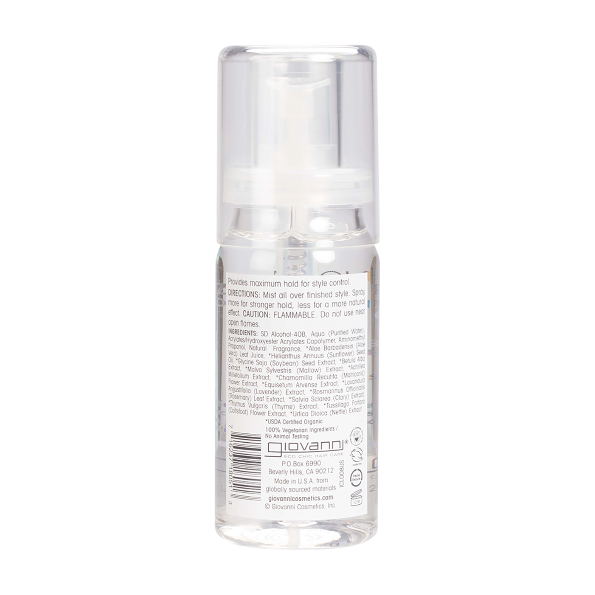 {"id":9433761743144,"title":"Giovanni LA Hold Hair Spritz 65ml","handle":"giovanni-la-hold-hair-spritz-65ml","description":"\u003cp\u003eFortified with herbs, vitamins and vegetable protein, it penetrates into the hair shaft, sealing in moisture, while adding vibrant shine to the hair. A styling and finishing spritz that holds and dries quickly wherever the hair is placed. L.A. Hold contains vegetable protein which leaves the hair very shiny, radiant, luxuriant, and healthy. Giovanni L.A. Hold is made not to strip hair colour, is a non-aerosol spray and contains no lacquers which could be harmful to the atmosphere. Contains no animal by-products and is never tested on animals.\u003c\/p\u003e\n\u003ch5\u003eReviews\u003c\/h5\u003e\n\u003cp\u003eReviews go here\u003c\/p\u003e\n\u003ch5\u003eIngredients\u003c\/h5\u003e\n\u003cp\u003eAny images, tags, filters, product categories, and any other information on this website showing ingredients, nutrition panels, or allergy statements are for guidance only, as manufacturers often change their formulations without notice. Please contact the manufacturer for the most up-to-date ingredient information, or email us to confirm the ingredients of the stock currently on hand.\u003c\/p\u003e","published_at":"2024-09-10T16:34:05+10:00","created_at":"2024-09-10T16:34:06+10:00","vendor":"GIOVANNI","type":"Other","tags":["Hair","Hair Styling","Personal Care","Sydney Store"],"price":1090,"price_min":1090,"price_max":1090,"available":false,"price_varies":false,"compare_at_price":null,"compare_at_price_min":0,"compare_at_price_max":0,"compare_at_price_varies":false,"variants":[{"id":49208790712616,"title":"Default Title","option1":"Default Title","option2":null,"option3":null,"sku":"716237180513","requires_shipping":true,"taxable":true,"featured_image":null,"available":false,"name":"Giovanni LA Hold Hair Spritz 65ml","public_title":null,"options":["Default Title"],"price":1090,"weight":65,"compare_at_price":null,"inventory_quantity":0,"inventory_management":"shopify","inventory_policy":"deny","barcode":null,"requires_selling_plan":false,"selling_plan_allocations":[]}],"images":["\/\/crueltyfreeshop.com.au\/cdn\/shop\/files\/GV39.png?v=1765247650","\/\/crueltyfreeshop.com.au\/cdn\/shop\/files\/GV39BACK.png?v=1765247660"],"featured_image":"\/\/crueltyfreeshop.com.au\/cdn\/shop\/files\/GV39.png?v=1765247650","options":["Title"],"media":[{"alt":null,"id":43152310042920,"position":1,"preview_image":{"aspect_ratio":1.0,"height":1200,"width":1200,"src":"\/\/crueltyfreeshop.com.au\/cdn\/shop\/files\/GV39.png?v=1765247650"},"aspect_ratio":1.0,"height":1200,"media_type":"image","src":"\/\/crueltyfreeshop.com.au\/cdn\/shop\/files\/GV39.png?v=1765247650","width":1200},{"alt":null,"id":43152310173992,"position":2,"preview_image":{"aspect_ratio":1.0,"height":1200,"width":1200,"src":"\/\/crueltyfreeshop.com.au\/cdn\/shop\/files\/GV39BACK.png?v=1765247660"},"aspect_ratio":1.0,"height":1200,"media_type":"image","src":"\/\/crueltyfreeshop.com.au\/cdn\/shop\/files\/GV39BACK.png?v=1765247660","width":1200}],"requires_selling_plan":false,"selling_plan_groups":[],"content":"\u003cp\u003eFortified with herbs, vitamins and vegetable protein, it penetrates into the hair shaft, sealing in moisture, while adding vibrant shine to the hair. A styling and finishing spritz that holds and dries quickly wherever the hair is placed. L.A. Hold contains vegetable protein which leaves the hair very shiny, radiant, luxuriant, and healthy. Giovanni L.A. Hold is made not to strip hair colour, is a non-aerosol spray and contains no lacquers which could be harmful to the atmosphere. Contains no animal by-products and is never tested on animals.\u003c\/p\u003e\n\u003ch5\u003eReviews\u003c\/h5\u003e\n\u003cp\u003eReviews go here\u003c\/p\u003e\n\u003ch5\u003eIngredients\u003c\/h5\u003e\n\u003cp\u003eAny images, tags, filters, product categories, and any other information on this website showing ingredients, nutrition panels, or allergy statements are for guidance only, as manufacturers often change their formulations without notice. Please contact the manufacturer for the most up-to-date ingredient information, or email us to confirm the ingredients of the stock currently on hand.\u003c\/p\u003e"}