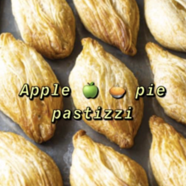500g. Ingredients: Wheat flour, water, diced apple, vegetable margarine, natural flavour, natural colour (160a), sugar, corn flour, cloves.