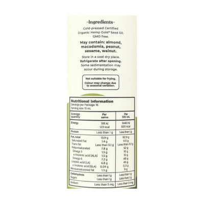 {"id":9804518064424,"title":"Hemp Foods Australia Organic Hemp Gold Seed Oil 250ml","handle":"hemp-foods-australia-organic-hemp-gold-seed-oil-250ml","description":"\u003cp\u003eAustralian Certified Organic virgin cold pressed hemp oil (hemp seed oil) in a superior GLASS BOTTLE.\u003c\/p\u003e\n\u003cp class=\"p1\"\u003eHemp oil is known for it's healing properties due to its great nutritional values. High in omega-3 and omega-6 essential fatty acids. This may assist in healthy skin.\u003c\/p\u003e\n\u003ch5\u003eReviews\u003c\/h5\u003e\n\u003cp\u003eReviews go here\u003c\/p\u003e\n\u003ch5\u003eIngredients\u003c\/h5\u003e\n\u003cp\u003eAny images, tags, filters, product categories, and any other information on this website showing ingredients, nutrition panels, or allergy statements are for guidance only, as manufacturers often change their formulations without notice. Please contact the manufacturer for the most up-to-date ingredient information, or email us to confirm the ingredients of the stock currently on hand.\u003c\/p\u003e\n\u003ch5\u003eImportant Shipping Note\u003c\/h5\u003e\n\u003cdiv\u003e\n\u003cspan\u003eAll orders containing chilled products, frozen products and chocolates must include a Cooler to protect them in transit. The\u003c\/span\u003e\u003cspan\u003e \u003c\/span\u003e\u003cspan\u003eCooler\u003c\/span\u003e\u003cspan\u003e will automatically add to your order when a cold product is added to your shopping cart. \u003c\/span\u003e\u003cspan\u003eFrozen items may defrost in transit, we can not recommend re-freezing. \u003c\/span\u003e\u003cspan\u003eWe will select the correct size cooler for your order. Chilled orders can only be sent to certain areas, please refer to our \u003c\/span\u003e\u003ca href=\"https:\/\/www.crueltyfreeshop.com.au\/pages\/faq#refrid\" rel=\"noopener\" target=\"_blank\" data-saferedirecturl=\"https:\/\/www.google.com\/url?q=https:\/\/www.crueltyfreeshop.com.au\/pages\/faq%23refrid\u0026amp;source=gmail\u0026amp;ust=1664430462005000\u0026amp;usg=AOvVaw3YpBIvhTwoxQRA_PVqbP_L\"\u003eFAQ\u003c\/a\u003e\u003cspan\u003e or email us at \u003c\/span\u003e\u003ca href=\"mailto:online@vegangrocerystore.com.au\" rel=\"noopener\" target=\"_blank\"\u003eonline@vegangrocerystore.\u003cwbr\u003ecom.au\u003c\/wbr\u003e\u003c\/a\u003e\n\u003c\/div\u003e","published_at":"2025-09-16T09:25:54+10:00","created_at":"2025-09-16T09:25:54+10:00","vendor":"Hemp Foods Australia","type":"Food (GST Free)","tags":["Health Food","Oil","Sydney Store"],"price":1249,"price_min":1249,"price_max":1249,"available":true,"price_varies":false,"compare_at_price":null,"compare_at_price_min":0,"compare_at_price_max":0,"compare_at_price_varies":false,"variants":[{"id":50669085720872,"title":"Default Title","option1":"Default Title","option2":null,"option3":null,"sku":"609728292799","requires_shipping":true,"taxable":false,"featured_image":null,"available":true,"name":"Hemp Foods Australia Organic Hemp Gold Seed Oil 250ml","public_title":null,"options":["Default Title"],"price":1249,"weight":0,"compare_at_price":null,"inventory_quantity":5,"inventory_management":"shopify","inventory_policy":"deny","barcode":null,"requires_selling_plan":false,"selling_plan_allocations":[]}],"images":["\/\/crueltyfreeshop.com.au\/cdn\/shop\/files\/HM07.png?v=1760342424","\/\/crueltyfreeshop.com.au\/cdn\/shop\/files\/chef_schoicehempseedoil-NutritionalInformation.jpg?v=1764558387"],"featured_image":"\/\/crueltyfreeshop.com.au\/cdn\/shop\/files\/HM07.png?v=1760342424","options":["Title"],"media":[{"alt":null,"id":42705487659304,"position":1,"preview_image":{"aspect_ratio":1.0,"height":1024,"width":1024,"src":"\/\/crueltyfreeshop.com.au\/cdn\/shop\/files\/HM07.png?v=1760342424"},"aspect_ratio":1.0,"height":1024,"media_type":"image","src":"\/\/crueltyfreeshop.com.au\/cdn\/shop\/files\/HM07.png?v=1760342424","width":1024},{"alt":null,"id":43112465727784,"position":2,"preview_image":{"aspect_ratio":1.0,"height":400,"width":400,"src":"\/\/crueltyfreeshop.com.au\/cdn\/shop\/files\/chef_schoicehempseedoil-NutritionalInformation.jpg?v=1764558387"},"aspect_ratio":1.0,"height":400,"media_type":"image","src":"\/\/crueltyfreeshop.com.au\/cdn\/shop\/files\/chef_schoicehempseedoil-NutritionalInformation.jpg?v=1764558387","width":400}],"requires_selling_plan":false,"selling_plan_groups":[],"content":"\u003cp\u003eAustralian Certified Organic virgin cold pressed hemp oil (hemp seed oil) in a superior GLASS BOTTLE.\u003c\/p\u003e\n\u003cp class=\"p1\"\u003eHemp oil is known for it's healing properties due to its great nutritional values. High in omega-3 and omega-6 essential fatty acids. This may assist in healthy skin.\u003c\/p\u003e\n\u003ch5\u003eReviews\u003c\/h5\u003e\n\u003cp\u003eReviews go here\u003c\/p\u003e\n\u003ch5\u003eIngredients\u003c\/h5\u003e\n\u003cp\u003eAny images, tags, filters, product categories, and any other information on this website showing ingredients, nutrition panels, or allergy statements are for guidance only, as manufacturers often change their formulations without notice. Please contact the manufacturer for the most up-to-date ingredient information, or email us to confirm the ingredients of the stock currently on hand.\u003c\/p\u003e\n\u003ch5\u003eImportant Shipping Note\u003c\/h5\u003e\n\u003cdiv\u003e\n\u003cspan\u003eAll orders containing chilled products, frozen products and chocolates must include a Cooler to protect them in transit. The\u003c\/span\u003e\u003cspan\u003e \u003c\/span\u003e\u003cspan\u003eCooler\u003c\/span\u003e\u003cspan\u003e will automatically add to your order when a cold product is added to your shopping cart. \u003c\/span\u003e\u003cspan\u003eFrozen items may defrost in transit, we can not recommend re-freezing. \u003c\/span\u003e\u003cspan\u003eWe will select the correct size cooler for your order. Chilled orders can only be sent to certain areas, please refer to our \u003c\/span\u003e\u003ca href=\"https:\/\/www.crueltyfreeshop.com.au\/pages\/faq#refrid\" 