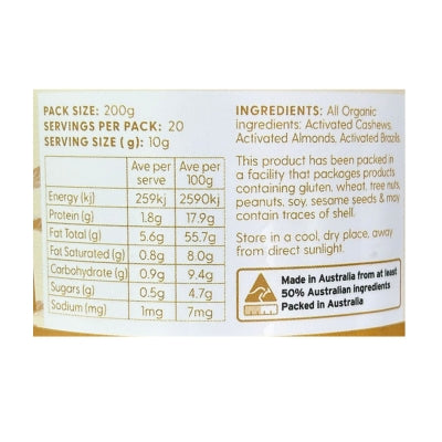 {"id":9841347100968,"title":"Live Wholefoods Organic Activated ABC Butter 200g","handle":"live-wholefoods-organic-activated-abc-butter-200g","description":"\u003cp\u003e \u003c\/p\u003e\n\u003ch5\u003eReviews\u003c\/h5\u003e\n\u003cp\u003eReviews go here\u003c\/p\u003e\n\u003ch5\u003eIngredients\u003c\/h5\u003e\n\u003cp\u003eAny images, tags, filters, product categories, and any other information on this website showing ingredients, nutrition panels, or allergy statements are for guidance only, as manufacturers often change their formulations without notice. Please contact the manufacturer for the most up-to-date ingredient information, or email us to confirm the ingredients of the stock currently on hand.\u003c\/p\u003e","published_at":"2025-10-02T11:12:25+10:00","created_at":"2025-10-02T11:12:24+10:00","vendor":"Live Wholefoods","type":"","tags":["Nuts","Savoury Spreads","Sweet Spreads","Sydney Store"],"price":1106,"price_min":1106,"price_max":1106,"available":true,"price_varies":false,"compare_at_price":null,"compare_at_price_min":0,"compare_at_price_max":0,"compare_at_price_varies":false,"variants":[{"id":50792797864232,"title":"Default Title","option1":"Default Title","option2":null,"option3":null,"sku":"9348082020891","requires_shipping":true,"taxable":false,"featured_image":null,"available":true,"name":"Live Wholefoods Organic Activated ABC Butter 200g","public_title":null,"options":["Default Title"],"price":1106,"weight":0,"compare_at_price":null,"inventory_quantity":4,"inventory_management":"shopify","inventory_policy":"deny","barcode":null,"requires_selling_plan":false,"selling_plan_allocations":[]}],"images":["\/\/crueltyfreeshop.com.au\/cdn\/shop\/files\/LiveWholefoodsOrganicActivatedABCButter200g.png?v=1764741623","\/\/crueltyfreeshop.com.au\/cdn\/shop\/files\/LIVEWHOLEFOODSABCBUTTER-NutritionalInformation.jpg?v=1764741623"],"featured_image":"\/\/crueltyfreeshop.com.au\/cdn\/shop\/files\/LiveWholefoodsOrganicActivatedABCButter200g.png?v=1764741623","options":["Title"],"media":[{"alt":null,"id":43122801344808,"position":1,"preview_image":{"aspect_ratio":1.0,"height":800,"width":800,"src":"\/\/crueltyfreeshop.com.au\/cdn\/shop\/files\/LiveWholefoodsOrganicActivatedABCButter200g.png?v=1764741623"},"aspect_ratio":1.0,"height":800,"media_type":"image","src":"\/\/crueltyfreeshop.com.au\/cdn\/shop\/files\/LiveWholefoodsOrganicActivatedABCButter200g.png?v=1764741623","width":800},{"alt":null,"id":43112750383400,"position":2,"preview_image":{"aspect_ratio":1.0,"height":400,"width":400,"src":"\/\/crueltyfreeshop.com.au\/cdn\/shop\/files\/LIVEWHOLEFOODSABCBUTTER-NutritionalInformation.jpg?v=1764741623"},"aspect_ratio":1.0,"height":400,"media_type":"image","src":"\/\/crueltyfreeshop.com.au\/cdn\/shop\/files\/LIVEWHOLEFOODSABCBUTTER-NutritionalInformation.jpg?v=1764741623","width":400}],"requires_selling_plan":false,"selling_plan_groups":[],"content":"\u003cp\u003e \u003c\/p\u003e\n\u003ch5\u003eReviews\u003c\/h5\u003e\n\u003cp\u003eReviews go here\u003c\/p\u003e\n\u003ch5\u003eIngredients\u003c\/h5\u003e\n\u003cp\u003eAny images, tags, filters, product categories, and any other information on this website showing ingredients, nutrition panels, or allergy statements are for guidance only, as manufacturers often change their formulations without notice. Please contact the manufacturer for the most up-to-date ingredient information, or email us to confirm the ingredients of the stock currently on hand.\u003c\/p\u003e"}