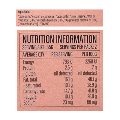 {"id":10139250131240,"title":"Loco Love - Wild Rose Ganache Twin Pack (cold)","handle":"loco-love-wild-rose-ganache-twin-pack-cold","description":"\u003cp class=\"MsoNormal\"\u003e\u003cspan lang=\"EN-GB\" style=\"color: #212529;\"\u003eAn impossibly smooth, rich and decadent sensory experience of dark ganache infused with the highest vibration Bulgarian Rose oil. Beautifying bursts of Goji Berry dust – renowned for promoting skin health – give a subtle tartness to each intoxicating bite. Be enchanted by a new kind of romance. \u003c\/span\u003e\u003cspan lang=\"EN-GB\"\u003e\u003co:p\u003e\u003c\/o:p\u003e\u003c\/span\u003e\u003c\/p\u003e\n\u003ch5\u003eReviews\u003c\/h5\u003e\n\u003cp\u003eReviews go here\u003c\/p\u003e\n\u003ch5\u003eIngredients\u003c\/h5\u003e\n\u003cp\u003eAny images, tags, filters, product categories, and any other information on this website showing ingredients, nutrition panels, or allergy statements are for guidance only, as manufacturers often change their formulations without notice. Please contact the manufacturer for the most up-to-date ingredient information, or email us to confirm the ingredients of the stock currently on hand.\u003c\/p\u003e\n\u003ch5\u003eImportant Shipping Note\u003c\/h5\u003e\n\u003cdiv\u003e\n\u003cspan\u003eAll orders containing chilled products, frozen products and chocolates must include a Cooler to protect them in transit. The\u003c\/span\u003e\u003cspan\u003e \u003c\/span\u003e\u003cspan\u003eCooler\u003c\/span\u003e\u003cspan\u003e will automatically add to your order when a cold product is added to your shopping cart. \u003c\/span\u003e\u003cspan\u003eFrozen items may defrost in transit, we can not recommend re-freezing. \u003c\/span\u003e\u003cspan\u003eWe will select the correct size cooler for your order. Chilled orders can only be sent to certain areas, please refer to our \u003c\/span\u003e\u003ca href=\"https:\/\/www.crueltyfreeshop.com.au\/pages\/faq#refrid\" rel=\"noopener\" target=\"_blank\" data-saferedirecturl=\"https:\/\/www.google.com\/url?q=https:\/\/www.crueltyfreeshop.com.au\/pages\/faq%23refrid\u0026amp;source=gmail\u0026amp;ust=1664430462005000\u0026amp;usg=AOvVaw3YpBIvhTwoxQRA_PVqbP_L\"\u003eFAQ\u003c\/a\u003e\u003cspan\u003e or email us at \u003c\/span\u003e\u003ca href=\"mailto:online@vegangrocerystore.com.au\" rel=\"noopener\" target=\"_blank\"\u003eonline@vegangrocerystore.\u003cwbr\u003ecom.au\u003c\/wbr\u003e\u003c\/a\u003e\n\u003c\/div\u003e","published_at":"2026-03-17T12:47:05+11:00","created_at":"2026-01-30T16:49:32+11:00","vendor":"Loco Love Chocolate","type":"General","tags":["Chocolate","Sydney Store"],"price":1290,"price_min":1290,"price_max":1290,"available":true,"price_varies":false,"compare_at_price":null,"compare_at_price_min":0,"compare_at_price_max":0,"compare_at_price_varies":false,"variants":[{"id":51387605319976,"title":"Default Title","option1":"Default Title","option2":null,"option3":null,"sku":"9357490000180","requires_shipping":true,"taxable":true,"featured_image":null,"available":true,"name":"Loco Love - Wild Rose Ganache Twin Pack (cold)","public_title":null,"options":["Default Title"],"price":1290,"weight":70,"compare_at_price":null,"inventory_quantity":7,"inventory_management":"shopify","inventory_policy":"deny","barcode":null,"requires_selling_plan":false,"selling_plan_allocations":[],"quantity_rule":{"min":1,"max":null,"increment":1}}],"images":["\/\/crueltyfreeshop.com.au\/cdn\/shop\/files\/LocoLoveWildRoseGanacheTwinPack.png?v=1770177177","\/\/crueltyfreeshop.com.au\/cdn\/shop\/files\/LocoLoveRose-NutritionalInformation.jpg?v=1771382701"],"featured_image":"\/\/crueltyfreeshop.com.au\/cdn\/shop\/files\/LocoLoveWildRoseGanacheTwinPack.png?v=1770177177","options":["Title"],"media":[{"alt":null,"id":43393567162664,"position":1,"preview_image":{"aspect_ratio":1.0,"height":400,"width":400,"src":"\/\/crueltyfreeshop.com.au\/cdn\/shop\/files\/LocoLoveWildRoseGanacheTwinPack.png?v=1770177177"},"aspect_ratio":1.0,"height":400,"media_type":"image","src":"\/\/crueltyfreeshop.com.au\/cdn\/shop\/files\/LocoLoveWildRoseGanacheTwinPack.png?v=1770177177","width":400},{"alt":null,"id":43497074589992,"position":2,"preview_image":{"aspect_ratio":1.0,"height":400,"width":400,"src":"\/\/crueltyfreeshop.com.au\/cdn\/shop\/files\/LocoLoveRose-NutritionalInformation.jpg?v=1771382701"},"aspect_ratio":1.0,"height":400,"media_type":"image","src":"\/\/crueltyfreeshop.com.au\/cdn\/shop\/files\/LocoLoveRose-NutritionalInformation.jpg?v=1771382701","width":400}],"requires_selling_plan":false,"selling_plan_groups":[],"content":"\u003cp class=\"MsoNormal\"\u003e\u003cspan lang=\"EN-GB\" style=\"color: #212529;\"\u003eAn impossibly smooth, rich and decadent sensory experience of dark ganache infused with the highest vibration Bulgarian Rose oil. Beautifying bursts of Goji Berry dust – renowned for promoting skin health – give a subtle tartness to each intoxicating bite. Be enchanted by a new kind of romance. \u003c\/span\u003e\u003cspan lang=\"EN-GB\"\u003e\u003co:p\u003e\u003c\/o:p\u003e\u003c\/span\u003e\u003c\/p\u003e\n\u003ch5\u003eReviews\u003c\/h5\u003e\n\u003cp\u003eReviews go here\u003c\/p\u003e\n\u003ch5\u003eIngredients\u003c\/h5\u003e\n\u003cp\u003eAny images, tags, filters, product categories, and any other information on this website showing ingredients, nutrition panels, or allergy statements are for guidance only, as manufacturers often change their formulations without notice. Please contact the manufacturer for the most up-to-date ingredient information, or email us to confirm the ingredients of the stock currently on hand.\u003c\/p\u003e\n\u003ch5\u003eImportant Shipping Note\u003c\/h5\u003e\n\u003cdiv\u003e\n\u003cspan\u003eAll orders containing chilled products, frozen products and chocolates must include a Cooler to protect them in transit. The\u003c\/span\u003e\u003cspan\u003e \u003c\/span\u003e\u003cspan\u003eCooler\u003c\/span\u003e\u003cspan\u003e will automatically add to your