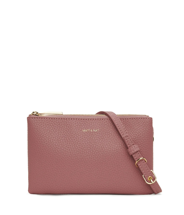 {"id":8726409937192,"title":"Matt \u0026 Nat Triplet Crossbody - Rose","handle":"matt-nat-triplet-crossbody-rose","description":"\u003cp\u003e\u003cspan\u003eA crossbody bag can be used as a pouch with removable and adjustable straps. Three separate compartments with top zipper closures. \u003c\/span\u003e\u003c\/p\u003e\n\u003cul\u003e\n\u003cli\u003eInterior: 12 card slots, one patch pocket, logo-embossed Purity patch.\u003c\/li\u003e\n\u003cli\u003eDimensions: 8” L x 5.5” H x 2” D.\u003c\/li\u003e\n\u003cli\u003eShoulder Strap Drop: 20”- 24.5”\u003c\/li\u003e\n\u003c\/ul\u003e\n\u003cdiv\u003e\u003cspan\u003eThe outer body and lining of the Purity collection are made from recycled materials.\u003c\/span\u003e\u003c\/div\u003e\n\u003cdiv\u003e\u003cspan\u003eAll of the interior linings of our bags are made from 100% recycled plastic bottles.\u003c\/span\u003e\u003c\/div\u003e\n\u003cdiv\u003e\u003cspan\u003eOur company is completely vegan and cruelty-free.\u003c\/span\u003e\u003c\/div\u003e","published_at":"2025-10-20T23:24:14+11:00","created_at":"2023-10-20T12:13:00+11:00","vendor":"Matt \u0026 Nat","type":"Bags","tags":["Sydney Store"],"price":13900,"price_min":13900,"price_max":13900,"available":true,"price_varies":false,"compare_at_price":null,"compare_at_price_min":0,"compare_at_price_max":0,"compare_at_price_varies":false,"variants":[{"id":46994015912232,"title":"Default Title","option1":"Default Title","option2":null,"option3":null,"sku":"883313050463","requires_shipping":true,"taxable":true,"featured_image":null,"available":true,"name":"Matt \u0026 Nat Triplet Crossbody - Rose","public_title":null,"options":["Default Title"],"price":13900,"weight":400,"compare_at_price":null,"inventory_quantity":1,"inventory_management":"shopify","inventory_policy":"deny","barcode":null,"requires_selling_plan":false,"selling_plan_allocations":[]}],"images":["\/\/crueltyfreeshop.com.au\/cdn\/shop\/files\/MN-Purity-Triplet-Rose-1.png?v=1764287041","\/\/crueltyfreeshop.com.au\/cdn\/shop\/files\/ScreenShot2022-11-05at4.14.44pm.png?v=1764287041","\/\/crueltyfreeshop.com.au\/cdn\/shop\/files\/ScreenShot2022-11-05at4.14.38pm.png?v=1764287041","\/\/crueltyfreeshop.com.au\/cdn\/shop\/files\/ScreenShot2022-11-05at4.14.29pm.png?v=1764287041"],"featured_image":"\/\/crueltyfreeshop.com.au\/cdn\/shop\/files\/MN-Purity-Triplet-Rose-1.png?v=1764287041","options":["Title"],"media":[{"alt":null,"id":43097524699432,"position":1,"preview_image":{"aspect_ratio":0.857,"height":832,"width":713,"src":"\/\/crueltyfreeshop.com.au\/cdn\/shop\/files\/MN-Purity-Triplet-Rose-1.png?v=1764287041"},"aspect_ratio":0.857,"height":832,"media_type":"image","src":"\/\/crueltyfreeshop.com.au\/cdn\/shop\/files\/MN-Purity-Triplet-Rose-1.png?v=1764287041","width":713},{"alt":null,"id":36685041697064,"position":2,"preview_image":{"aspect_ratio":0.857,"height":399,"width":342,"src":"\/\/crueltyfreeshop.com.au\/cdn\/shop\/files\/ScreenShot2022-11-05at4.14.44pm.png?v=1764287041"},"aspect_ratio":0.857,"height":399,"media_type":"image","src":"\/\/crueltyfreeshop.com.au\/cdn\/shop\/files\/ScreenShot2022-11-05at4.14.44pm.png?v=1764287041","width":342},{"alt":null,"id":36685041729832,"position":3,"preview_image":{"aspect_ratio":0.852,"height":399,"width":340,"src":"\/\/crueltyfreeshop.com.au\/cdn\/shop\/files\/ScreenShot2022-11-05at4.14.38pm.png?v=1764287041"},"aspect_ratio":0.852,"height":399,"media_type":"image","src":"\/\/crueltyfreeshop.com.au\/cdn\/shop\/files\/ScreenShot2022-11-05at4.14.38pm.png?v=1764287041","width":340},{"alt":null,"id":36685041762600,"position":4,"preview_image":{"aspect_ratio":0.851,"height":402,"width":342,"src":"\/\/crueltyfreeshop.com.au\/cdn\/shop\/files\/ScreenShot2022-11-05at4.14.29pm.png?v=1764287041"},"aspect_ratio":0.851,"height":402,"media_type":"image","src":"\/\/crueltyfreeshop.com.au\/cdn\/shop\/files\/ScreenShot2022-11-05at4.14.29pm.png?v=1764287041","width":342}],"requires_selling_plan":false,"selling_plan_groups":[],"content":"\u003cp\u003e\u003cspan\u003eA crossbody bag can be used as a pouch with removable and adjustable straps. Three separate compartments with top zipper closures. \u003c\/span\u003e\u003c\/p\u003e\n\u003cul\u003e\n\u003cli\u003eInterior: 12 card slots, one patch pocket, logo-embossed Purity patch.\u003c\/li\u003e\n\u003cli\u003eDimensions: 8” L x 5.5” H x 2” D.\u003c\/li\u003e\n\u003cli\u003eShoulder Strap Drop: 20”- 24.5”\u003c\/li\u003e\n\u003c\/ul\u003e\n\u003cdiv\u003e\u003cspan\u003eThe outer body and lining of the Purity collection are made from recycled materials.\u003c\/span\u003e\u003c\/div\u003e\n\u003cdiv\u003e\u003cspan\u003eAll of the interior linings of our bags are made from 100% recycled plastic bottles.\u003c\/span\u003e\u003c\/div\u003e\n\u003cdiv\u003e\u003cspan\u003eOur company is completely vegan and cruelty-free.\u003c\/span\u003e\u003c\/div\u003e"}