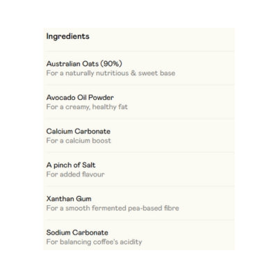 {"id":9700014522664,"title":"Nimbus Oat Barista Milk Powder 3 ltr 300g","handle":"nimbus-oat-barista-milk-powder-300g","description":"\u003cp\u003e \u003c\/p\u003e\n\u003ch5\u003eReviews\u003c\/h5\u003e\n\u003cp\u003eReviews go here\u003c\/p\u003e\n\u003ch5\u003eIngredients\u003c\/h5\u003e\n\u003cp\u003eAny images, tags, filters, product categories, and any other information on this website showing ingredients, nutrition panels, or allergy statements are for guidance only, as manufacturers often change their formulations without notice. Please contact the manufacturer for the most up-to-date ingredient information, or email us to confirm the ingredients of the stock currently on hand.\u003c\/p\u003e","published_at":"2025-07-08T15:22:17+10:00","created_at":"2025-07-08T15:22:16+10:00","vendor":"Nimbus","type":"","tags":["Flour","Milk","Sydney Store","Travel"],"price":1513,"price_min":1513,"price_max":1513,"available":true,"price_varies":false,"compare_at_price":null,"compare_at_price_min":0,"compare_at_price_max":0,"compare_at_price_varies":false,"variants":[{"id":50361391939880,"title":"Default Title","option1":"Default Title","option2":null,"option3":null,"sku":"9309002331008","requires_shipping":true,"taxable":false,"featured_image":null,"available":true,"name":"Nimbus Oat Barista Milk Powder 3 ltr 300g","public_title":null,"options":["Default Title"],"price":1513,"weight":0,"compare_at_price":null,"inventory_quantity":4,"inventory_management":"shopify","inventory_policy":"deny","barcode":null,"requires_selling_plan":false,"selling_plan_allocations":[]}],"images":["\/\/crueltyfreeshop.com.au\/cdn\/shop\/files\/NBS16.webp?v=1763686780","\/\/crueltyfreeshop.com.au\/cdn\/shop\/files\/nimbusoatbarista-NutritionalInformation.jpg?v=1764207639","\/\/crueltyfreeshop.com.au\/cdn\/shop\/files\/nimbusoatbarista-Ingredients.jpg?v=1764207639"],"featured_image":"\/\/crueltyfreeshop.com.au\/cdn\/shop\/files\/NBS16.webp?v=1763686780","options":["Title"],"media":[{"alt":null,"id":43020812681512,"position":1,"preview_image":{"aspect_ratio":1.0,"height":1200,"width":1200,"src":"\/\/crueltyfreeshop.com.au\/cdn\/shop\/files\/NBS16.webp?v=1763686780"},"aspect_ratio":1.0,"height":1200,"media_type":"image","src":"\/\/crueltyfreeshop.com.au\/cdn\/shop\/files\/NBS16.webp?v=1763686780","width":1200},{"alt":null,"id":43091196084520,"position":2,"preview_image":{"aspect_ratio":1.0,"height":400,"width":400,"src":"\/\/crueltyfreeshop.com.au\/cdn\/shop\/files\/nimbusoatbarista-NutritionalInformation.jpg?v=1764207639"},"aspect_ratio":1.0,"height":400,"media_type":"image","src":"\/\/crueltyfreeshop.com.au\/cdn\/shop\/files\/nimbusoatbarista-NutritionalInformation.jpg?v=1764207639","width":400},{"alt":null,"id":43091196117288,"position":3,"preview_image":{"aspect_ratio":1.0,"height":400,"width":400,"src":"\/\/crueltyfreeshop.com.au\/cdn\/shop\/files\/nimbusoatbarista-Ingredients.jpg?v=1764207639"},"aspect_ratio":1.0,"height":400,"media_type":"image","src":"\/\/crueltyfreeshop.com.au\/cdn\/shop\/files\/nimbusoatbarista-Ingredients.jpg?v=1764207639","width":400}],"requires_selling_plan":false,"selling_plan_groups":[],"content":"\u003cp\u003e \u003c\/p\u003e\n\u003ch5\u003eReviews\u003c\/h5\u003e\n\u003cp\u003eReviews go here\u003c\/p\u003e\n\u003ch5\u003eIngredients\u003c\/h5\u003e\n\u003cp\u003eAny images, tags, filters, product categories, and any other information on this website showing ingredients, nutrition panels, or allergy statements are for guidance only, as manufacturers often change their formulations without notice. Please contact the manufacturer for the most up-to-date ingredient information, or email us to confirm the ingredients of the stock currently on hand.\u003c\/p\u003e"}