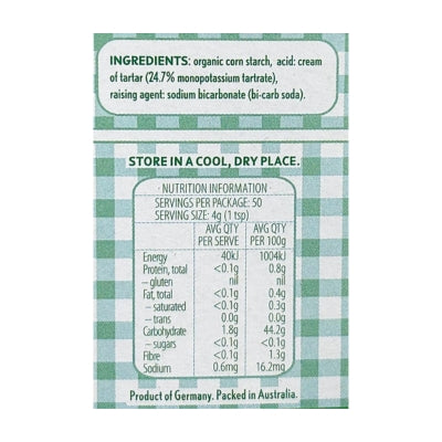 {"id":9700034281768,"title":"Organic Times Baking Powder 200g","handle":"organic-times-baking-powder-200g","description":"\u003cp\u003e \u003c\/p\u003e\n\u003ch5\u003eReviews\u003c\/h5\u003e\n\u003cp\u003eReviews go here\u003c\/p\u003e\n\u003ch5\u003eIngredients\u003c\/h5\u003e\n\u003cp\u003eAny images, tags, filters, product categories, and any other information on this website showing ingredients, nutrition panels, or allergy statements are for guidance only, as manufacturers often change their formulations without notice. Please contact the manufacturer for the most up-to-date ingredient information, or email us to confirm the ingredients of the stock currently on hand.\u003c\/p\u003e","published_at":"2025-07-08T15:35:28+10:00","created_at":"2025-07-08T15:35:27+10:00","vendor":"Organic Times","type":"","tags":["Raising Agents","Sydney Store"],"price":889,"price_min":889,"price_max":889,"available":true,"price_varies":false,"compare_at_price":null,"compare_at_price_min":0,"compare_at_price_max":0,"compare_at_price_varies":false,"variants":[{"id":50361535299880,"title":"Default Title","option1":"Default Title","option2":null,"option3":null,"sku":"9338415002229","requires_shipping":true,"taxable":false,"featured_image":null,"available":true,"name":"Organic Times Baking Powder 200g","public_title":null,"options":["Default Title"],"price":889,"weight":0,"compare_at_price":null,"inventory_quantity":2,"inventory_management":"shopify","inventory_policy":"deny","barcode":null,"requires_selling_plan":false,"selling_plan_allocations":[]}],"images":["\/\/crueltyfreeshop.com.au\/cdn\/shop\/files\/OG61_3.jpg?v=1751952929","\/\/crueltyfreeshop.com.au\/cdn\/shop\/files\/OrganicBakingPowder-NutritionalInformation.jpg?v=1765327158"],"featured_image":"\/\/crueltyfreeshop.com.au\/cdn\/shop\/files\/OG61_3.jpg?v=1751952929","options":["Title"],"media":[{"alt":null,"id":41844644348200,"position":1,"preview_image":{"aspect_ratio":1.0,"height":420,"width":420,"src":"\/\/crueltyfreeshop.com.au\/cdn\/shop\/files\/OG61_3.jpg?v=1751952929"},"aspect_ratio":1.0,"height":420,"media_type":"image","src":"\/\/crueltyfreeshop.com.au\/cdn\/shop\/files\/OG61_3.jpg?v=1751952929","width":420},{"alt":null,"id":43158269460776,"position":2,"preview_image":{"aspect_ratio":1.0,"height":400,"width":400,"src":"\/\/crueltyfreeshop.com.au\/cdn\/shop\/files\/OrganicBakingPowder-NutritionalInformation.jpg?v=1765327158"},"aspect_ratio":1.0,"height":400,"media_type":"image","src":"\/\/crueltyfreeshop.com.au\/cdn\/shop\/files\/OrganicBakingPowder-NutritionalInformation.jpg?v=1765327158","width":400}],"requires_selling_plan":false,"selling_plan_groups":[],"content":"\u003cp\u003e \u003c\/p\u003e\n\u003ch5\u003eReviews\u003c\/h5\u003e\n\u003cp\u003eReviews go here\u003c\/p\u003e\n\u003ch5\u003eIngredients\u003c\/h5\u003e\n\u003cp\u003eAny images, tags, filters, product categories, and any other information on this website showing ingredients, nutrition panels, or allergy statements are for guidance only, as manufacturers often change their formulations without notice. Please contact the manufacturer for the most up-to-date ingredient information, or email us to confirm the ingredients of the stock currently on hand.\u003c\/p\u003e"}