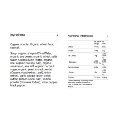 {"id":9486879752488,"title":"Spiral Foods Ramen - Organic Shoyu (Instant) 109g","handle":"spiral-foods-ramen-organic-shoyu-instant-109g","description":"\u003cp\u003e \u003c\/p\u003e\n\u003ch5\u003eReviews\u003c\/h5\u003e\n\u003cp\u003eReviews go here\u003c\/p\u003e\n\u003ch5\u003eIngredients\u003c\/h5\u003e\n\u003cp\u003eAny images, tags, filters, product categories, and any other information on this website showing ingredients, nutrition panels, or allergy statements are for guidance only, as manufacturers often change their formulations without notice. Please contact the manufacturer for the most up-to-date ingredient information, or email us to confirm the ingredients of the stock currently on hand.\u003c\/p\u003e","published_at":"2025-03-05T12:37:10+11:00","created_at":"2024-11-07T16:57:52+11:00","vendor":"Spiral Foods","type":"General","tags":["Instant Meals","Noodles","Sydney Store"],"price":590,"price_min":590,"price_max":590,"available":true,"price_varies":false,"compare_at_price":null,"compare_at_price_min":0,"compare_at_price_max":0,"compare_at_price_varies":false,"variants":[{"id":49487105065256,"title":"Default Title","option1":"Default Title","option2":null,"option3":null,"sku":"9312336023310","requires_shipping":true,"taxable":false,"featured_image":null,"available":true,"name":"Spiral Foods Ramen - Organic Shoyu (Instant) 109g","public_title":null,"options":["Default Title"],"price":590,"weight":0,"compare_at_price":null,"inventory_quantity":4,"inventory_management":"shopify","inventory_policy":"deny","barcode":null,"requires_selling_plan":false,"selling_plan_allocations":[]}],"images":["\/\/crueltyfreeshop.com.au\/cdn\/shop\/files\/organic_ramen_shoyu_2000.jpg?v=1730959072","\/\/crueltyfreeshop.com.au\/cdn\/shop\/files\/SpiralShoyuRamen-NutritionalInformation.jpg?v=1764637316"],"featured_image":"\/\/crueltyfreeshop.com.au\/cdn\/shop\/files\/organic_ramen_shoyu_2000.jpg?v=1730959072","options":["Title"],"media":[{"alt":null,"id":40433981554984,"position":1,"preview_image":{"aspect_ratio":1.0,"height":2000,"width":2000,"src":"\/\/crueltyfreeshop.com.au\/cdn\/shop\/files\/organic_ramen_shoyu_2000.jpg?v=1730959072"},"aspect_ratio":1.0,"height":2000,"media_type":"image","src":"\/\/crueltyfreeshop.com.au\/cdn\/shop\/files\/organic_ramen_shoyu_2000.jpg?v=1730959072","width":2000},{"alt":null,"id":43116341461288,"position":2,"preview_image":{"aspect_ratio":1.0,"height":400,"width":400,"src":"\/\/crueltyfreeshop.com.au\/cdn\/shop\/files\/SpiralShoyuRamen-NutritionalInformation.jpg?v=1764637316"},"aspect_ratio":1.0,"height":400,"media_type":"image","src":"\/\/crueltyfreeshop.com.au\/cdn\/shop\/files\/SpiralShoyuRamen-NutritionalInformation.jpg?v=1764637316","width":400}],"requires_selling_plan":false,"selling_plan_groups":[],"content":"\u003cp\u003e \u003c\/p\u003e\n\u003ch5\u003eReviews\u003c\/h5\u003e\n\u003cp\u003eReviews go here\u003c\/p\u003e\n\u003ch5\u003eIngredients\u003c\/h5\u003e\n\u003cp\u003eAny images, tags, filters, product categories, and any other information on this website showing ingredients, nutrition panels, or allergy statements are for guidance only, as manufacturers often change their formulations without notice. Please contact the manufacturer for the most up-to-date ingredient information, or email us to confirm the ingredients of the stock currently on hand.\u003c\/p\u003e"}