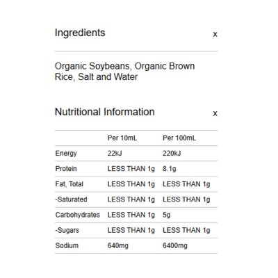 {"id":9486879031592,"title":"Spiral Foods Sauce - Soy Sauce Thai Organic 200ml","handle":"spiral-foods-sauce-soy-sauce-thai-organic-200ml","description":"\u003cp\u003e \u003c\/p\u003e\n\u003ch5\u003eReviews\u003c\/h5\u003e\n\u003cp\u003eReviews go here\u003c\/p\u003e\n\u003ch5\u003eIngredients\u003c\/h5\u003e\n\u003cp\u003eAny images, tags, filters, product categories, and any other information on this website showing ingredients, nutrition panels, or allergy statements are for guidance only, as manufacturers often change their formulations without notice. Please contact the manufacturer for the most up-to-date ingredient information, or email us to confirm the ingredients of the stock currently on hand.\u003c\/p\u003e","published_at":"2025-09-15T16:34:01+10:00","created_at":"2024-11-07T16:50:11+11:00","vendor":"Spiral Foods","type":"General","tags":["Dressings","Savoury Sauces","Sydney Store"],"price":515,"price_min":515,"price_max":515,"available":true,"price_varies":false,"compare_at_price":null,"compare_at_price_min":0,"compare_at_price_max":0,"compare_at_price_varies":false,"variants":[{"id":49487097004328,"title":"Default Title","option1":"Default Title","option2":null,"option3":null,"sku":"9312336112007","requires_shipping":true,"taxable":false,"featured_image":null,"available":true,"name":"Spiral Foods Sauce - Soy Sauce Thai Organic 200ml","public_title":null,"options":["Default Title"],"price":515,"weight":0,"compare_at_price":null,"inventory_quantity":2,"inventory_management":"shopify","inventory_policy":"deny","barcode":null,"requires_selling_plan":false,"selling_plan_allocations":[]}],"images":["\/\/crueltyfreeshop.com.au\/cdn\/shop\/files\/Spiral_Soy_Sauce_Organic_200ml_2000x2000px.jpg?v=1730958611","\/\/crueltyfreeshop.com.au\/cdn\/shop\/files\/SpiralGlutenFreeSoySauce-NutritionalInformation.png?v=1764552793"],"featured_image":"\/\/crueltyfreeshop.com.au\/cdn\/shop\/files\/Spiral_Soy_Sauce_Organic_200ml_2000x2000px.jpg?v=1730958611","options":["Title"],"media":[{"alt":null,"id":40433963303208,"position":1,"preview_image":{"aspect_ratio":1.0,"height":2000,"width":2000,"src":"\/\/crueltyfreeshop.com.au\/cdn\/shop\/files\/Spiral_Soy_Sauce_Organic_200ml_2000x2000px.jpg?v=1730958611"},"aspect_ratio":1.0,"height":2000,"media_type":"image","src":"\/\/crueltyfreeshop.com.au\/cdn\/shop\/files\/Spiral_Soy_Sauce_Organic_200ml_2000x2000px.jpg?v=1730958611","width":2000},{"alt":null,"id":43112059830568,"position":2,"preview_image":{"aspect_ratio":1.0,"height":400,"width":400,"src":"\/\/crueltyfreeshop.com.au\/cdn\/shop\/files\/SpiralGlutenFreeSoySauce-NutritionalInformation.png?v=1764552793"},"aspect_ratio":1.0,"height":400,"media_type":"image","src":"\/\/crueltyfreeshop.com.au\/cdn\/shop\/files\/SpiralGlutenFreeSoySauce-NutritionalInformation.png?v=1764552793","width":400}],"requires_selling_plan":false,"selling_plan_groups":[],"content":"\u003cp\u003e \u003c\/p\u003e\n\u003ch5\u003eReviews\u003c\/h5\u003e\n\u003cp\u003eReviews go here\u003c\/p\u003e\n\u003ch5\u003eIngredients\u003c\/h5\u003e\n\u003cp\u003eAny images, tags, filters, product categories, and any other information on this website showing ingredients, nutrition panels, or allergy statements are for guidance only, as manufacturers often change their formulations without notice. Please contact the manufacturer for the most up-to-date ingredient information, or email us to confirm the ingredients of the stock currently on hand.\u003c\/p\u003e"}