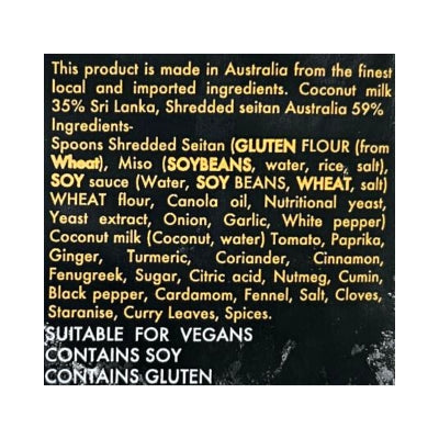 {"id":8152327422248,"title":"Suzy Spoons Vegan Butter Chicken 425g (cold)","handle":"suzy-spoons-vegan-butter-chicken-cold","description":"\u003cp\u003eEnjoy Suzy Spoons' vegan version of this much loved authentic North Indian classic.\u003c\/p\u003e\n\u003cp\u003eSuzy Spoons slow cooks their Shredded Seitan 'chicken' in a carefully selected blend of mild aromatic spices. Then infuses it with organic coconut milk to create a creamy, silky, rich and full bodied butter chicken experience. Spoon's vegan butter chicken will become a household favourite for the whole family.\u003c\/p\u003e\n\u003cp\u003e**This product is dispatched frozen, though will thaw in transit. Upon the arrival of your delivery, put it in the fridge for 12 days shelf life**\u003c\/p\u003e\n\u003c!-- TABS --\u003e\n\u003ch5\u003eReviews\u003c\/h5\u003e\n\u003cp\u003eReviews go here\u003c\/p\u003e\n\u003ch5\u003eIngredients\u003c\/h5\u003e\n\u003cp\u003eAny images, tags, filters, product categories, and any other information on this website showing ingredients, nutrition panels, or allergy statements are for guidance only, as manufacturers often change their formulations without notice. Please contact the manufacturer for the most up-to-date ingredient information, or email us to confirm the ingredients of the stock currently on hand.\u003c\/p\u003e\n\u003ch5\u003eImportant Shipping Note\u003c\/h5\u003e\n\u003cdiv\u003e\n\u003cspan\u003eAll orders containing chilled products, frozen products and chocolates must include a Cooler to protect them in transit. The\u003c\/span\u003e\u003cspan\u003e \u003c\/span\u003e\u003cspan\u003eCooler\u003c\/span\u003e\u003cspan\u003e will automatically add to your order when a cold product is added to your shopping cart. \u003c\/span\u003e\u003cspan\u003eFrozen items may defrost in transit, we can not recommend re-freezing. \u003c\/span\u003e\u003cspan\u003eWe will select the correct size cooler for your order. Chilled orders can only be sent to certain areas, please refer to our \u003c\/span\u003e\u003ca href=\"https:\/\/www.crueltyfreeshop.com.au\/pages\/faq#refrid\" rel=\"noopener\" target=\"_blank\" data-saferedirecturl=\"https:\/\/www.google.com\/url?q=https:\/\/www.crueltyfreeshop.com.au\/pages\/faq%23refrid\u0026amp;source=gmail\u0026amp;ust=1664430462005000\u0026amp;usg=AOvVaw3YpBIvhTwoxQRA_PVqbP_L\"\u003eFAQ\u003c\/a\u003e\u003cspan\u003e or email us at \u003c\/span\u003e\u003ca href=\"mailto:online@vegangrocerystore.com.au\" rel=\"noopener\" target=\"_blank\"\u003eonline@vegangrocerystore.\u003cwbr\u003ecom.au\u003c\/wbr\u003e\u003c\/a\u003e\n\u003c\/div\u003e","published_at":"2025-09-15T16:36:57+10:00","created_at":"2023-03-06T13:19:04+11:00","vendor":"Suzy Spoons","type":"Refrig food (GST Free)","tags":["Chicken","Ready Made Meals","Sydney Store"],"price":1399,"price_min":1399,"price_max":1399,"available":false,"price_varies":false,"compare_at_price":null,"compare_at_price_min":0,"compare_at_price_max":0,"compare_at_price_varies":false,"variants":[{"id":44681728590120,"title":"Default Title","option1":"Default Title","option2":null,"option3":null,"sku":"9357360000197","requires_shipping":true,"taxable":false,"featured_image":null,"available":false,"name":"Suzy Spoons Vegan Butter Chicken 425g (cold)","public_title":null,"options":["Default Title"],"price":1399,"weight":425,"compare_at_price":null,"inventory_quantity":0,"inventory_management":"shopify","inventory_policy":"deny","barcode":"","requires_selling_plan":false,"selling_plan_allocations":[]}],"images":["\/\/crueltyfreeshop.com.au\/cdn\/shop\/products\/SuzySpoonsVeganButterChicken425g_cold.jpg?v=1763349961","\/\/crueltyfreeshop.com.au\/cdn\/shop\/files\/suzybutterchicken-NutritionalInfo.jpg?v=1763680199","\/\/crueltyfreeshop.com.au\/cdn\/shop\/files\/suzybutterchicken-ingredients.jpg?v=1763680199","\/\/crueltyfreeshop.com.au\/cdn\/shop\/products\/IMG_5868_1024x1024_2x_d276f2c7-04d8-496b-9fdd-7488471c4650.webp?v=1763680199"],"featured_image":"\/\/crueltyfreeshop.com.au\/cdn\/shop\/products\/SuzySpoonsVeganButterChicken425g_cold.jpg?v=1763349961","options":["Title"],"media":[{"alt":null,"id":33947493040424,"position":1,"preview_image":{"aspect_ratio":1.0,"height":1000,"width":1000,"src":"\/\/crueltyfreeshop.com.au\/cdn\/shop\/products\/SuzySpoonsVeganButterChicken425g_cold.jpg?v=1763349961"},"aspect_ratio":1.0,"height":1000,"media_type":"image","src":"\/\/crueltyfreeshop.com.au\/cdn\/shop\/products\/SuzySpoonsVeganButterChicken425g_cold.jpg?v=1763349961","width":1000},{"alt":null,"id":43020495454504,"position":2,"preview_image":{"aspect_ratio":1.0,"height":400,"width":400,"src":"\/\/crueltyfreeshop.com.au\/cdn\/shop\/files\/suzybutterchicken-NutritionalInfo.jpg?v=1763680199"},"aspect_ratio":1.0,"height":400,"media_type":"image","src":"\/\/crueltyfreeshop.com.au\/cdn\/shop\/files\/suzybutterchicken-NutritionalInfo.jpg?v=1763680199","width":400},{"alt":null,"id":43020495487272,"position":3,"preview_image":{"aspect_ratio":1.0,"height":400,"width":400,"src":"\/\/crueltyfreeshop.com.au\/cdn\/shop\/files\/suzybutterchicken-ingredients.jpg?v=1763680199"},"aspect_ratio":1.0,"height":400,"media_type":"image","src":"\/\/crueltyfreeshop.com.au\/cdn\/shop\/files\/suzybutterchicken-ingredients.jpg?v=1763680199","width":400},{"alt":null,"id":33947474952488,"position":4,"preview_image":{"aspect_ratio":1.0,"height":1099,"width":1099,"src":"\/\/crueltyfreeshop.com.au\/cdn\/shop\/products\/IMG_5868_1024x1024_2x_d276f2c7-04d8-496b-9fdd-7488471c4650.webp?v=1763680199"},"aspect_ratio":1.0,"height":1099,"media_type":"image","src":"\/\/crueltyfreeshop.com.au\/cdn\/shop\/products\/IMG_5868_1024x1024_2x_d276f2c7-04d8-496b-9fdd-7488471c4650.webp?v=1763680199","width":1099}],"requires_selling_plan":false,"selling_plan_groups":[],"content":"\u003cp\u003eEnjoy Suzy Spoons' vegan version of this much loved authentic North Indian classic.\u003c\/p\u003e\n\u003cp\u003eSuzy Spoons slow cooks their Shredded Seitan 'chicken' in a carefully selected blend o