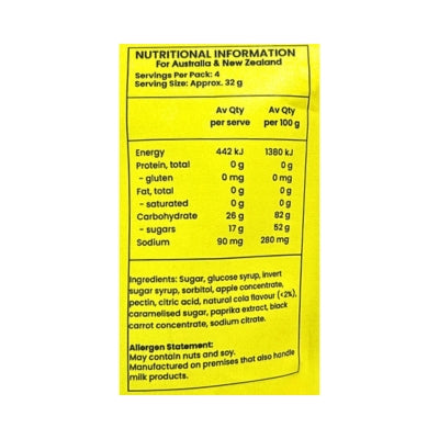 {"id":9700037951784,"title":"Sweet Lounge Vegan Fizzy Cola Bottles 130g","handle":"sweet-lounge-vegan-fizzy-cola-bottles-130g","description":"\u003cp\u003e \u003c\/p\u003e\n\u003ch5\u003eReviews\u003c\/h5\u003e\n\u003cp\u003eReviews go here\u003c\/p\u003e\n\u003ch5\u003eIngredients\u003c\/h5\u003e\n\u003cp\u003eAny images, tags, filters, product categories, and any other information on this website showing ingredients, nutrition panels, or allergy statements are for guidance only, as manufacturers often change their formulations without notice. Please contact the manufacturer for the most up-to-date ingredient information, or email us to confirm the ingredients of the stock currently on hand.\u003c\/p\u003e","published_at":"2025-07-08T15:51:23+10:00","created_at":"2025-07-08T15:51:23+10:00","vendor":"Sweet Lounge","type":"","tags":["Sweets","Sydney Store"],"price":714,"price_min":714,"price_max":714,"available":true,"price_varies":false,"compare_at_price":null,"compare_at_price_min":0,"compare_at_price_max":0,"compare_at_price_varies":false,"variants":[{"id":50361543917864,"title":"Default Title","option1":"Default Title","option2":null,"option3":null,"sku":"5060754920714","requires_shipping":true,"taxable":true,"featured_image":null,"available":true,"name":"Sweet Lounge Vegan Fizzy Cola Bottles 130g","public_title":null,"options":["Default Title"],"price":714,"weight":0,"compare_at_price":null,"inventory_quantity":19,"inventory_management":"shopify","inventory_policy":"deny","barcode":null,"requires_selling_plan":false,"selling_plan_allocations":[]}],"images":["\/\/crueltyfreeshop.com.au\/cdn\/shop\/files\/ST040.jpg?v=1751953885","\/\/crueltyfreeshop.com.au\/cdn\/shop\/files\/SweetLoungeCola-NutritionalInfo.jpg?v=1764028982"],"featured_image":"\/\/crueltyfreeshop.com.au\/cdn\/shop\/files\/ST040.jpg?v=1751953885","options":["Title"],"media":[{"alt":null,"id":41844670791976,"position":1,"preview_image":{"aspect_ratio":1.0,"height":800,"width":800,"src":"\/\/crueltyfreeshop.com.au\/cdn\/shop\/files\/ST040.jpg?v=1751953885"},"aspect_ratio":1.0,"height":800,"media_type":"image","src":"\/\/crueltyfreeshop.com.au\/cdn\/shop\/files\/ST040.jpg?v=1751953885","width":800},{"alt":null,"id":43055982412072,"position":2,"preview_image":{"aspect_ratio":1.0,"height":400,"width":400,"src":"\/\/crueltyfreeshop.com.au\/cdn\/shop\/files\/SweetLoungeCola-NutritionalInfo.jpg?v=1764028982"},"aspect_ratio":1.0,"height":400,"media_type":"image","src":"\/\/crueltyfreeshop.com.au\/cdn\/shop\/files\/SweetLoungeCola-NutritionalInfo.jpg?v=1764028982","width":400}],"requires_selling_plan":false,"selling_plan_groups":[],"content":"\u003cp\u003e \u003c\/p\u003e\n\u003ch5\u003eReviews\u003c\/h5\u003e\n\u003cp\u003eReviews go here\u003c\/p\u003e\n\u003ch5\u003eIngredients\u003c\/h5\u003e\n\u003cp\u003eAny images, tags, filters, product categories, and any other information on this website showing ingredients, nutrition panels, or allergy statements are for guidance only, as manufacturers often change their formulations without notice. Please contact the manufacturer for the most up-to-date ingredient information, or email us to confirm the ingredients of the stock currently on hand.\u003c\/p\u003e"}