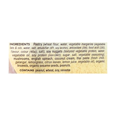 {"id":9431387013416,"title":"Funky Pie - Spicy Thai Pie 270g (cold)","handle":"tbdfunky-pies-spicy-thai-pie-cold","description":"\u003cp\u003eSpicy Thai Funky Pie: chicken-style chunks, mushrooms and spinach in tom yum sauce.\u003c\/p\u003e\n\u003cp\u003e240g. Ingredients: Pastry (Wheat flour, water, vegetable margarine (vegetable fats \u0026amp; oils, water, salt, emulsifier (471,soy lecithin), antioxidant (306), food acids (330), flavour, colour (160a)), salt), soy chunks (textured vegetable protein, water, vegetable oil, soy protein (non GMO), sugar, salt, vegetarian seasonings), mushrooms, english spinach, coconut cream, thai paste (fresh chillies, galangal, lemongrass, citrus leaves, lemon juice, vegetable oil), linseeds, sesame seeds, peanuts.\u003c\/p\u003e\n\u003cp\u003eVegan. Dairy-free. Wrapped in biodegradable Bio-packaging made from cornstarch.\u003c\/p\u003e\n\u003cp\u003e\u003cstrong\u003eIMPORTANT NOTE ABOUT ORDERING COLD PRODUCTS\u003c\/strong\u003e\u003c\/p\u003e\n\u003cp\u003eAll orders containing cold products must include a cold pack to keep them cool in transit. The Cold Pack costs $5.00 and will be automatically added to your order when you add a cold product to your shopping cart. There is no limit to how many products you can fit in a Cold Pack. Frozen products will defrost in transit, we do not recommend re-freezing. The Cold Pack can be kept for your own use or if you return it to the Cruelty Free Shop in Glebe NSW you will receive a full refund. Refrigerated products can only be sent to areas serviced by Fastway overnight couriers from Sydney; they cannot be sent by post. The areas serviced include:\u003c\/p\u003e\n\u003cul\u003e\n\u003cli\u003eVictoria: Melbourne and some surrounding areas\u003c\/li\u003e\n\u003cli\u003eNSW: Sydney, Wollongong, Newcastle and some surrounding areas and parts of Northern NSW\u003c\/li\u003e\n\u003cli\u003eQueensland: Southern Queensland, Brisbane, Sunshine Coast, Gold Coast and some surrounding areas\u003c\/li\u003e\n\u003cli\u003eSA: Adelaide\u003c\/li\u003e\n\u003cli\u003eACT: Canberra\u003c\/li\u003e\n\u003c\/ul\u003e\n\u003cp\u003eIf you are unsure whether your area is serviced please email us at \u003ca href=\"mailto:info@crueltyfreeshop.com.au\"\u003einfo@crueltyfreeshop.com.au\u003c\/a\u003e.\u003c\/p\u003e\n\u003cp\u003eFrozen products will defrost in transit, we do not recommend refreezing.\u003c\/p\u003e\n\u003cp\u003eWe cannot ship refrigerated products to any parts of WA, NT or Tasmania however we can send all our non-cold products anywhere in Austalia with Austalia Post.\u003c\/p\u003e","published_at":"2025-02-26T14:55:31+11:00","created_at":"2024-09-09T12:38:37+10:00","vendor":"Funky Pies","type":"Refrig food","tags":[],"price":783,"price_min":783,"price_max":783,"available":true,"price_varies":false,"compare_at_price":null,"compare_at_price_min":0,"compare_at_price_max":0,"compare_at_price_varies":false,"variants":[{"id":49202158895400,"title":"Default Title","option1":"Default Title","option2":null,"option3":null,"sku":"9369999598358","requires_shipping":true,"taxable":true,"featured_image":null,"available":true,"name":"Funky Pie - Spicy Thai Pie 270g (cold)","public_title":null,"options":["Default Title"],"price":783,"weight":0,"compare_at_price":null,"inventory_quantity":3,"inventory_management":"shopify","inventory_policy":"deny","barcode":null,"requires_selling_plan":false,"selling_plan_allocations":[]}],"images":["\/\/crueltyfreeshop.com.au\/cdn\/shop\/files\/Spicy-Thai-Pie.jpg?v=1725849517","\/\/crueltyfreeshop.com.au\/cdn\/shop\/files\/spicythai-NutritionalInfo.jpg?v=1763610434","\/\/crueltyfreeshop.com.au\/cdn\/shop\/files\/spicythai-ingredients.jpg?v=1763610434"],"featured_image":"\/\/crueltyfreeshop.com.au\/cdn\/shop\/files\/Spicy-Thai-Pie.jpg?v=1725849517","options":["Title"],"media":[{"alt":null,"id":40008291287336,"position":1,"preview_image":{"aspect_ratio":1.026,"height":975,"width":1000,"src":"\/\/crueltyfreeshop.com.au\/cdn\/shop\/files\/Spicy-Thai-Pie.jpg?v=1725849517"},"aspect_ratio":1.026,"height":975,"media_type":"image","src":"\/\/crueltyfreeshop.com.au\/cdn\/shop\/files\/Spicy-Thai-Pie.jpg?v=1725849517","width":1000},{"alt":null,"id":43015558168872,"position":2,"preview_image":{"aspect_ratio":1.0,"height":400,"width":400,"src":"\/\/crueltyfreeshop.com.au\/cdn\/shop\/files\/spicythai-NutritionalInfo.jpg?v=1763610434"},"aspect_ratio":1.0,"height":400,"media_type":"image","src":"\/\/crueltyfreeshop.com.au\/cdn\/shop\/files\/spicythai-NutritionalInfo.jpg?v=1763610434","width":400},{"alt":null,"id":43015558201640,"position":3,"preview_image":{"aspect_ratio":1.0,"height":400,"width":400,"src":"\/\/crueltyfreeshop.com.au\/cdn\/shop\/files\/spicythai-ingredients.jpg?v=1763610434"},"aspect_ratio":1.0,"height":400,"media_type":"image","src":"\/\/crueltyfreeshop.com.au\/cdn\/shop\/files\/spicythai-ingredients.jpg?v=1763610434","width":400}],"requires_selling_plan":false,"selling_plan_groups":[],"content":"\u003cp\u003eSpicy Thai Funky Pie: chicken-style chunks, mushrooms and spinach in tom yum sauce.\u003c\/p\u003e\n\u003cp\u003e240g. Ingredients: Pastry (Wheat flour, water, vegetable margarine (vegetable fats \u0026amp; oils, water, salt, emulsifier (471,soy lecithin), antioxidant (306), food acids (330), flavour, colour (160a)), salt), soy chunks (textured vegetable protein, water, vegetable oil, soy protein (non GMO), sugar, salt, vegetarian seasonings), mushrooms, english spinach, coconut cream, thai paste (fresh chillies, galangal, lemongrass, citrus leaves, lemon juice, vegetable oil), linseeds, sesame seeds, peanuts.\u003c\/p\u003e\n\u003cp\u003eVegan. Dairy-free. Wrapped in biodegradable Bio-packaging made from cornstarch.\u003c\/p\u003e\n\u003cp\u003e\u003cstrong\u003eIMPORTANT NOTE ABOUT ORDERING COLD PRODUCTS\u003c\/strong\u003e\u003c\/p\u003e\n\u003cp\u003eAll orders containing cold products must include a cold pack to keep them cool in transit. The Cold Pack costs $5.00 and will be automa