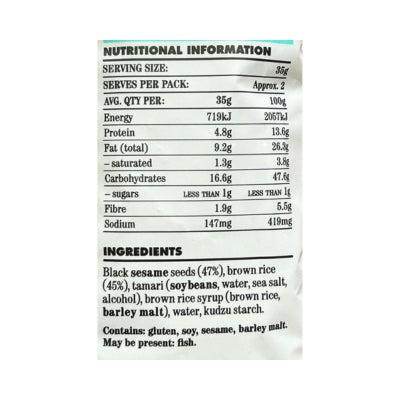 {"id":9488126443816,"title":"Spiral Foods Rice Crackers - Sesame Black 75g","handle":"tbdspiral-foods-black-sesame-crackers","description":"\u003cp\u003e\u003cspan style=\"color: #333333; font-family: Arial, Helvetica, sans-serif; font-size: 14px; font-weight: bold;\"\u003e\u003c\/span\u003eSpirals Senbei traditional black sesame cracker, oven baked, no added oils or fats, no added MSG or flavour enhancers.\u003c\/p\u003e\n\u003ch5\u003eReviews\u003c\/h5\u003e\n\u003cp\u003eReviews go here\u003c\/p\u003e\n\u003ch5\u003eIngredients\u003c\/h5\u003e\n\u003cp\u003eAny images, tags, filters, product categories, and any other information on this website showing ingredients, nutrition panels, or allergy statements are for guidance only, as manufacturers often change their formulations without notice. Please contact the manufacturer for the most up-to-date ingredient information, or email us to confirm the ingredients of the stock currently on hand.\u003c\/p\u003e","published_at":"2025-03-05T12:37:19+11:00","created_at":"2024-11-08T10:49:54+11:00","vendor":"Spiral Foods","type":"Food","tags":["Crackers","Sydney Store"],"price":566,"price_min":566,"price_max":566,"available":false,"price_varies":false,"compare_at_price":null,"compare_at_price_min":0,"compare_at_price_max":0,"compare_at_price_varies":false,"variants":[{"id":49490944885032,"title":"Default Title","option1":"Default Title","option2":null,"option3":null,"sku":"9312336051993","requires_shipping":true,"taxable":true,"featured_image":null,"available":false,"name":"Spiral Foods Rice Crackers - Sesame Black 75g","public_title":null,"options":["Default Title"],"price":566,"weight":0,"compare_at_price":null,"inventory_quantity":0,"inventory_management":"shopify","inventory_policy":"deny","barcode":null,"requires_selling_plan":false,"selling_plan_allocations":[]}],"images":["\/\/crueltyfreeshop.com.au\/cdn\/shop\/files\/Spiral_Crackers_Black-Sesame_65g_Front_2000x2000px.jpg?v=1731023394","\/\/crueltyfreeshop.com.au\/cdn\/shop\/files\/BlackSesameCrackers-NutritionalInformation.jpg?v=1764302180"],"featured_image":"\/\/crueltyfreeshop.com.au\/cdn\/shop\/files\/Spiral_Crackers_Black-Sesame_65g_Front_2000x2000px.jpg?v=1731023394","options":["Title"],"media":[{"alt":null,"id":40440202953000,"position":1,"preview_image":{"aspect_ratio":1.0,"height":2000,"width":2000,"src":"\/\/crueltyfreeshop.com.au\/cdn\/shop\/files\/Spiral_Crackers_Black-Sesame_65g_Front_2000x2000px.jpg?v=1731023394"},"aspect_ratio":1.0,"height":2000,"media_type":"image","src":"\/\/crueltyfreeshop.com.au\/cdn\/shop\/files\/Spiral_Crackers_Black-Sesame_65g_Front_2000x2000px.jpg?v=1731023394","width":2000},{"alt":null,"id":43098543227176,"position":2,"preview_image":{"aspect_ratio":1.0,"height":400,"width":400,"src":"\/\/crueltyfreeshop.com.au\/cdn\/shop\/files\/BlackSesameCrackers-NutritionalInformation.jpg?v=1764302180"},"aspect_ratio":1.0,"height":400,"media_type":"image","src":"\/\/crueltyfreeshop.com.au\/cdn\/shop\/files\/BlackSesameCrackers-NutritionalInformation.jpg?v=1764302180","width":400}],"requires_selling_plan":false,"selling_plan_groups":[],"content":"\u003cp\u003e\u003cspan style=\"color: #333333; font-family: Arial, Helvetica, sans-serif; font-size: 14px; font-weight: bold;\"\u003e\u003c\/span\u003eSpirals Senbei traditional black sesame cracker, oven baked, no added oils or fats, no added MSG or flavour enhancers.\u003c\/p\u003e\n\u003ch5\u003eReviews\u003c\/h5\u003e\n\u003cp\u003eReviews go here\u003c\/p\u003e\n\u003ch5\u003eIngredients\u003c\/h5\u003e\n\u003cp\u003eAny images, tags, filters, product categories, and any other information on this website showing ingredients, nutrition panels, or allergy statements are for guidance only, as manufacturers often change their formulations without notice. Please contact the manufacturer for the most up-to-date ingredient information, or email us to confirm the ingredients of the stock currently on hand.\u003c\/p\u003e"}