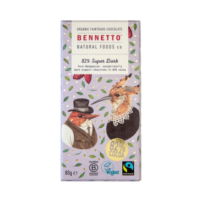 Bennetto Organic Dark Chocolate 82% Super Dark 80g (cold)