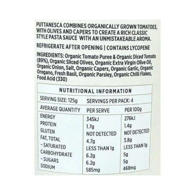 {"id":9488101736744,"title":"Aurelio Pasta Sauce - Puttanesca Organic 500g","handle":"aurelio-pasta-sauce-puttanesca-organic-500g","description":"\u003cp\u003e\u003cspan\u003ePuttanesca combines organically grown tomatoes with olives and capers to create a rich classic style pasta sauce with an unmistakable aroma.\u003c\/span\u003e\u003c\/p\u003e\n\u003ch5\u003eReviews\u003c\/h5\u003e\n\u003cp\u003eReviews go here\u003c\/p\u003e\n\u003ch5\u003eIngredients\u003c\/h5\u003e\n\u003cp\u003eAny images, tags, filters, product categories, and any other information on this website showing ingredients, nutrition panels, or allergy statements are for guidance only, as manufacturers often change their formulations without notice. Please contact the manufacturer for the most up-to-date ingredient information, or email us to confirm the ingredients of the stock currently on hand.\u003c\/p\u003e","published_at":"2025-09-15T16:27:41+10:00","created_at":"2024-11-08T10:09:23+11:00","vendor":"Aurelio","type":"General","tags":["Cooking Sauces","Sydney Store"],"price":582,"price_min":582,"price_max":582,"available":true,"price_varies":false,"compare_at_price":null,"compare_at_price_min":0,"compare_at_price_max":0,"compare_at_price_varies":false,"variants":[{"id":49490749030696,"title":"Default Title","option1":"Default Title","option2":null,"option3":null,"sku":"9326142000816","requires_shipping":true,"taxable":false,"featured_image":null,"available":true,"name":"Aurelio Pasta Sauce - Puttanesca Organic 500g","public_title":null,"options":["Default Title"],"price":582,"weight":0,"compare_at_price":null,"inventory_quantity":2,"inventory_management":"shopify","inventory_policy":"deny","barcode":null,"requires_selling_plan":false,"selling_plan_allocations":[]}],"images":["\/\/www.crueltyfreeshop.com.au\/cdn\/shop\/files\/Aurelio_Puttanesca_Organic_500g_2000x2000_8a258f7e-c327-408b-9933-b5024ad67250.jpg?v=1731020963","\/\/www.crueltyfreeshop.com.au\/cdn\/shop\/files\/AurelioPuttanesca-NutritionalInformation.jpg?v=1764740010"],"featured_image":"\/\/www.crueltyfreeshop.com.au\/cdn\/shop\/files\/Aurelio_Puttanesca_Organic_500g_2000x2000_8a258f7e-c327-408b-9933-b5024ad67250.jpg?v=1731020963","options":["Title"],"media":[{"alt":null,"id":40439967613224,"position":1,"preview_image":{"aspect_ratio":1.0,"height":2000,"width":2000,"src":"\/\/www.crueltyfreeshop.com.au\/cdn\/shop\/files\/Aurelio_Puttanesca_Organic_500g_2000x2000_8a258f7e-c327-408b-9933-b5024ad67250.jpg?v=1731020963"},"aspect_ratio":1.0,"height":2000,"media_type":"image","src":"\/\/www.crueltyfreeshop.com.au\/cdn\/shop\/files\/Aurelio_Puttanesca_Organic_500g_2000x2000_8a258f7e-c327-408b-9933-b5024ad67250.jpg?v=1731020963","width":2000},{"alt":null,"id":43122748129576,"position":2,"preview_image":{"aspect_ratio":1.0,"height":400,"width":400,"src":"\/\/www.crueltyfreeshop.com.au\/cdn\/shop\/files\/AurelioPuttanesca-NutritionalInformation.jpg?v=1764740010"},"aspect_ratio":1.0,"height":400,"media_type":"image","src":"\/\/www.crueltyfreeshop.com.au\/cdn\/shop\/files\/AurelioPuttanesca-NutritionalInformation.jpg?v=1764740010","width":400}],"requires_selling_plan":false,"selling_plan_groups":[],"content":"\u003cp\u003e\u003cspan\u003ePuttanesca combines organically grown tomatoes with olives and capers to create a rich classic style pasta sauce with an unmistakable aroma.\u003c\/span\u003e\u003c\/p\u003e\n\u003ch5\u003eReviews\u003c\/h5\u003e\n\u003cp\u003eReviews go here\u003c\/p\u003e\n\u003ch5\u003eIngredients\u003c\/h5\u003e\n\u003cp\u003eAny images, tags, filters, product categories, and any other information on this website showing ingredients, nutrition panels, or allergy statements are for guidance only, as manufacturers often change their formulations without notice. Please contact the manufacturer for the most up-to-date ingredient information, or email us to confirm the ingredients of the stock currently on hand.\u003c\/p\u003e"}