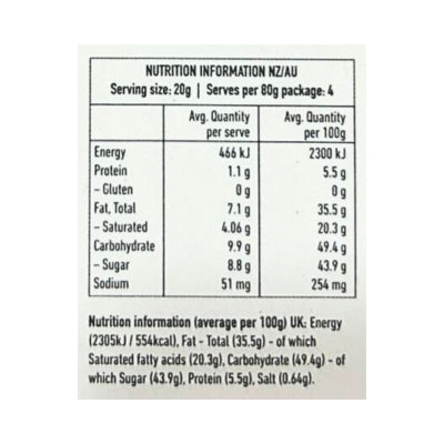 Any images, tags, filters, product categories, and any other information on this website showing ingredients, nutrition panels, or allergy statements are for guidance only, as manufacturers often change their formulations without notice. Please contact the manufacturer for the most up-to-date ingredient information, or email us to confirm the ingredients of the stock currently on hand.