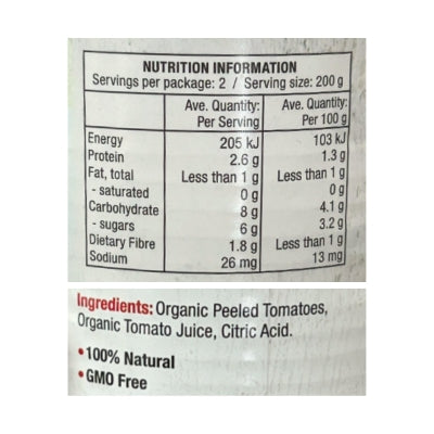 {"id":9486852784424,"title":"Chefs Choice Organic Tomatoes - Whole \u0026 Peeled Canned 400g","handle":"chefs-choice-organic-tomatoes-whole-peeled-canned-400g","description":"\u003cp\u003e \u003c\/p\u003e\n\u003ch5\u003eReviews\u003c\/h5\u003e\n\u003cp\u003eReviews go here\u003c\/p\u003e\n\u003ch5\u003eIngredients\u003c\/h5\u003e\n\u003cp\u003eAny images, tags, filters, product categories, and any other information on this website showing ingredients, nutrition panels, or allergy statements are for guidance only, as manufacturers often change their formulations without notice. Please contact the manufacturer for the most up-to-date ingredient information, or email us to confirm the ingredients of the stock currently on hand.\u003c\/p\u003e","published_at":"2025-07-16T15:02:18+10:00","created_at":"2024-11-07T14:49:41+11:00","vendor":"Chef's Choice","type":"General","tags":["Cooking Sauces","Sydney Store"],"price":286,"price_min":286,"price_max":286,"available":true,"price_varies":false,"compare_at_price":null,"compare_at_price_min":0,"compare_at_price_max":0,"compare_at_price_varies":false,"variants":[{"id":49486909341992,"title":"Default Title","option1":"Default Title","option2":null,"option3":null,"sku":"9339337004711","requires_shipping":true,"taxable":false,"featured_image":null,"available":true,"name":"Chefs Choice Organic Tomatoes - Whole \u0026 Peeled Canned 400g","public_title":null,"options":["Default Title"],"price":286,"weight":0,"compare_at_price":null,"inventory_quantity":4,"inventory_management":"shopify","inventory_policy":"deny","barcode":null,"requires_selling_plan":false,"selling_plan_allocations":[]}],"images":["\/\/www.crueltyfreeshop.com.au\/cdn\/shop\/files\/Certified-Organic-Whole-Peeled-Tomatoes-400g.jpg?v=1730951381","\/\/www.crueltyfreeshop.com.au\/cdn\/shop\/files\/Chef_sChoiceWholeTomatoes-NutritionalInformation.jpg?v=1764811308"],"featured_image":"\/\/www.crueltyfreeshop.com.au\/cdn\/shop\/files\/Certified-Organic-Whole-Peeled-Tomatoes-400g.jpg?v=1730951381","options":["Title"],"media":[{"alt":null,"id":40433649811752,"position":1,"preview_image":{"aspect_ratio":1.0,"height":800,"width":800,"src":"\/\/www.crueltyfreeshop.com.au\/cdn\/shop\/files\/Certified-Organic-Whole-Peeled-Tomatoes-400g.jpg?v=1730951381"},"aspect_ratio":1.0,"height":800,"media_type":"image","src":"\/\/www.crueltyfreeshop.com.au\/cdn\/shop\/files\/Certified-Organic-Whole-Peeled-Tomatoes-400g.jpg?v=1730951381","width":800},{"alt":null,"id":43127189864744,"position":2,"preview_image":{"aspect_ratio":1.0,"height":400,"width":400,"src":"\/\/www.crueltyfreeshop.com.au\/cdn\/shop\/files\/Chef_sChoiceWholeTomatoes-NutritionalInformation.jpg?v=1764811308"},"aspect_ratio":1.0,"height":400,"media_type":"image","src":"\/\/www.crueltyfreeshop.com.au\/cdn\/shop\/files\/Chef_sChoiceWholeTomatoes-NutritionalInformation.jpg?v=1764811308","width":400}],"requires_selling_plan":false,"selling_plan_groups":[],"content":"\u003cp\u003e \u003c\/p\u003e\n\u003ch5\u003eReviews\u003c\/h5\u003e\n\u003cp\u003eReviews go here\u003c\/p\u003e\n\u003ch5\u003eIngredients\u003c\/h5\u003e\n\u003cp\u003eAny images, tags, filters, product categories, and any other information on this website showing ingredients, nutrition panels, or allergy statements are for guidance only, as manufacturers often change their formulations without notice. Please contact the manufacturer for the most up-to-date ingredient information, or email us to confirm the ingredients of the stock currently on hand.\u003c\/p\u003e"}