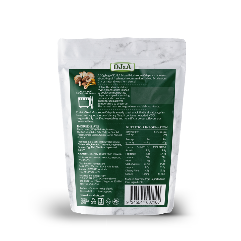 DJ&A Mixed Mushroom Crisps - Shiitake, Nameko & Oyster 30g