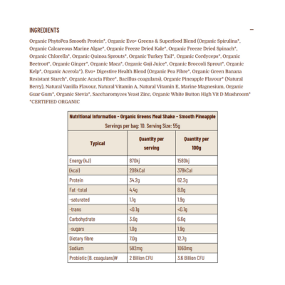 {"id":9874467356968,"title":"Evolution Botanicals Organic Greens Meal Shake - Pineapple 550g","handle":"evolution-botanicals-organic-greens-meal-shake-pineapple-550g","description":"\u003cp\u003e \u003c\/p\u003e\n\u003ch5\u003eReviews\u003c\/h5\u003e\n\u003cp\u003eReviews go here\u003c\/p\u003e\n\u003ch5\u003eIngredients\u003c\/h5\u003e\n\u003cp\u003eAny images, tags, filters, product categories, and any other information on this website showing ingredients, nutrition panels, or allergy statements are for guidance only, as manufacturers often change their formulations without notice. Please contact the manufacturer for the most up-to-date ingredient information, or email us to confirm the ingredients of the stock currently on hand.\u003c\/p\u003e","published_at":"2025-11-05T14:21:44+11:00","created_at":"2025-11-05T14:21:44+11:00","vendor":"Evolution Botanicals","type":"","tags":["Health Food","Instant Meals","Protein Powders","Sydney Store"],"price":4995,"price_min":4995,"price_max":4995,"available":true,"price_varies":false,"compare_at_price":null,"compare_at_price_min":0,"compare_at_price_max":0,"compare_at_price_varies":false,"variants":[{"id":50895982297384,"title":"Default Title","option1":"Default Title","option2":null,"option3":null,"sku":"9309000407392","requires_shipping":true,"taxable":true,"featured_image":null,"available":true,"name":"Evolution Botanicals Organic Greens Meal Shake - Pineapple 550g","public_title":null,"options":["Default Title"],"price":4995,"weight":0,"compare_at_price":null,"inventory_quantity":3,"inventory_management":"shopify","inventory_policy":"deny","barcode":null,"requires_selling_plan":false,"selling_plan_allocations":[]}],"images":["\/\/www.crueltyfreeshop.com.au\/cdn\/shop\/files\/EVO_GreenMealShake_SmoothPineapple_Front4.20.59pm.webp?v=1763505085","\/\/www.crueltyfreeshop.com.au\/cdn\/shop\/files\/evolutionpineapple-NutritionalInfo.png?v=1764196005","\/\/www.crueltyfreeshop.com.au\/cdn\/shop\/files\/evolutionpineapple-AdditionalNutritionalInfo.png?v=1764196005"],"featured_image":"\/\/www.crueltyfreeshop.com.au\/cdn\/shop\/files\/EVO_GreenMealShake_SmoothPineapple_Front4.20.59pm.webp?v=1763505085","options":["Title"],"media":[{"alt":null,"id":43006269849896,"position":1,"preview_image":{"aspect_ratio":1.0,"height":1946,"width":1946,"src":"\/\/www.crueltyfreeshop.com.au\/cdn\/shop\/files\/EVO_GreenMealShake_SmoothPineapple_Front4.20.59pm.webp?v=1763505085"},"aspect_ratio":1.0,"height":1946,"media_type":"image","src":"\/\/www.crueltyfreeshop.com.au\/cdn\/shop\/files\/EVO_GreenMealShake_SmoothPineapple_Front4.20.59pm.webp?v=1763505085","width":1946},{"alt":null,"id":43090687459624,"position":2,"preview_image":{"aspect_ratio":1.0,"height":400,"width":400,"src":"\/\/www.crueltyfreeshop.com.au\/cdn\/shop\/files\/evolutionpineapple-NutritionalInfo.png?v=1764196005"},"aspect_ratio":1.0,"height":400,"media_type":"image","src":"\/\/www.crueltyfreeshop.com.au\/cdn\/shop\/files\/evolutionpineapple-NutritionalInfo.png?v=1764196005","width":400},{"alt":null,"id":43090687426856,"position":3,"preview_image":{"aspect_ratio":1.0,"height":400,"width":400,"src":"\/\/www.crueltyfreeshop.com.au\/cdn\/shop\/files\/evolutionpineapple-AdditionalNutritionalInfo.png?v=1764196005"},"aspect_ratio":1.0,"height":400,"media_type":"image","src":"\/\/www.crueltyfreeshop.com.au\/cdn\/shop\/files\/evolutionpineapple-AdditionalNutritionalInfo.png?v=1764196005","width":400}],"requires_selling_plan":false,"selling_plan_groups":[],"content":"\u003cp\u003e \u003c\/p\u003e\n\u003ch5\u003eReviews\u003c\/h5\u003e\n\u003cp\u003eReviews go here\u003c\/p\u003e\n\u003ch5\u003eIngredients\u003c\/h5\u003e\n\u003cp\u003eAny images, tags, filters, product categories, and any other information on this website showing ingredients, nutrition panels, or allergy statements are for guidance only, as manufacturers often change their formulations without notice. Please contact the manufacturer for the most up-to-date ingredient information, or email us to confirm the ingredients of the stock currently on hand.\u003c\/p\u003e"}