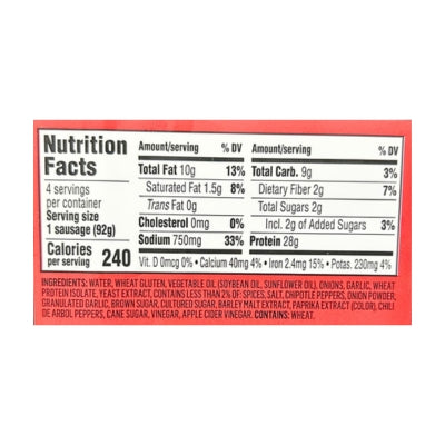 {"id":5525289107613,"title":"Field Roast Sausages Mexican Chipotle 368g (cold)","handle":"fieldroastmexicanchipotlesausage-case-12","description":"\u003cp\u003e\u003cstrong\u003e\u003c\/strong\u003eMexican Chipotle – a spicy-hot blend of smoked Chipotle peppers, Chili de Arbol peppers, fresh chopped garlic, sweet onions seasoned with cumin seed and oregano.\u003c\/p\u003e\n\u003ch5\u003eReviews\u003c\/h5\u003e\n\u003cp\u003eReviews go here\u003c\/p\u003e\n\u003ch5\u003eIngredients\u003c\/h5\u003e\n\u003cp\u003eAny images, tags, filters, product categories, and any other information on this website showing ingredients, nutrition panels, or allergy statements are for guidance only, as manufacturers often change their formulations without notice. Please contact the manufacturer for the most up-to-date ingredient information, or email us to confirm the ingredients of the stock currently on hand.\u003c\/p\u003e\n\u003ch5\u003eImportant Shipping Note\u003c\/h5\u003e\n\u003cdiv\u003e\n\u003cspan\u003eAll orders containing chilled products, frozen products and chocolates must include a Cooler to protect them in transit. The\u003c\/span\u003e\u003cspan\u003e \u003c\/span\u003e\u003cspan\u003eCooler\u003c\/span\u003e\u003cspan\u003e will automatically add to your order when a cold product is added to your shopping cart. \u003c\/span\u003e\u003cspan\u003eFrozen items may defrost in transit, we can not recommend re-freezing. \u003c\/span\u003e\u003cspan\u003eWe will select the correct size cooler for your order. Chilled orders can only be sent to certain areas, please refer to our \u003c\/span\u003e\u003ca href=\"https:\/\/www.crueltyfreeshop.com.au\/pages\/faq#refrid\" rel=\"noopener\" target=\"_blank\" data-saferedirecturl=\"https:\/\/www.google.com\/url?q=https:\/\/www.crueltyfreeshop.com.au\/pages\/faq%23refrid\u0026amp;source=gmail\u0026amp;ust=1664430462005000\u0026amp;usg=AOvVaw3YpBIvhTwoxQRA_PVqbP_L\"\u003eFAQ\u003c\/a\u003e\u003cspan\u003e or email us at \u003c\/span\u003e\u003ca href=\"mailto:online@vegangrocerystore.com.au\" rel=\"noopener\" target=\"_blank\"\u003eonline@vegangrocerystore.\u003cwbr\u003ecom.au\u003c\/wbr\u003e\u003c\/a\u003e\n\u003c\/div\u003e\n\u003c!-- \/TABS --\u003e","published_at":"2023-11-23T15:08:22+11:00","created_at":"2020-08-20T08:50:59+10:00","vendor":"Field roast","type":"Refrig food (GST Free)","tags":["Sausages","Sydney Store"],"price":1416,"price_min":1416,"price_max":1416,"available":true,"price_varies":false,"compare_at_price":null,"compare_at_price_min":0,"compare_at_price_max":0,"compare_at_price_varies":false,"variants":[{"id":35763969654941,"title":"Default Title","option1":"Default Title","option2":null,"option3":null,"sku":"638031612161","requires_shipping":true,"taxable":false,"featured_image":null,"available":true,"name":"Field Roast Sausages Mexican Chipotle 368g (cold)","public_title":null,"options":["Default Title"],"price":1416,"weight":370,"compare_at_price":null,"inventory_quantity":5,"inventory_management":"shopify","inventory_policy":"deny","barcode":"","requires_selling_plan":false,"selling_plan_allocations":[]}],"images":["\/\/www.crueltyfreeshop.com.au\/cdn\/shop\/files\/Product_Sausage_SpicyMexChipotle_US_Left.png?v=1695173998","\/\/www.crueltyfreeshop.com.au\/cdn\/shop\/files\/spicychipotle-NutritionalInfo.jpg?v=1763695119"],"featured_image":"\/\/www.crueltyfreeshop.com.au\/cdn\/shop\/files\/Product_Sausage_SpicyMexChipotle_US_Left.png?v=1695173998","options":["Title"],"media":[{"alt":null,"id":36361111437608,"position":1,"preview_image":{"aspect_ratio":1.0,"height":1100,"width":1100,"src":"\/\/www.crueltyfreeshop.com.au\/cdn\/shop\/files\/Product_Sausage_SpicyMexChipotle_US_Left.png?v=1695173998"},"aspect_ratio":1.0,"height":1100,"media_type":"image","src":"\/\/www.crueltyfreeshop.com.au\/cdn\/shop\/files\/Product_Sausage_SpicyMexChipotle_US_Left.png?v=1695173998","width":1100},{"alt":null,"id":43021549601064,"position":2,"preview_image":{"aspect_ratio":1.0,"height":400,"width":400,"src":"\/\/www.crueltyfreeshop.com.au\/cdn\/shop\/files\/spicychipotle-NutritionalInfo.jpg?v=1763695119"},"aspect_ratio":1.0,"height":400,"media_type":"image","src":"\/\/www.crueltyfreeshop.com.au\/cdn\/shop\/files\/spicychipotle-NutritionalInfo.jpg?v=1763695119","width":400}],"requires_selling_plan":false,"selling_plan_groups":[],"content":"\u003cp\u003e\u003cstrong\u003e\u003c\/strong\u003eMexican Chipotle – a spicy-hot blend of smoked Chipotle peppers, Chili de Arbol peppers, fresh chopped garlic, sweet onions seasoned with cumin seed and oregano.\u003c\/p\u003e\n\u003ch5\u003eReviews\u003c\/h5\u003e\n\u003cp\u003eReviews go here\u003c\/p\u003e\n\u003ch5\u003eIngredients\u003c\/h5\u003e\n\u003cp\u003eAny images, tags, filters, product categories, and any other information on this website showing ingredients, nutrition panels, or allergy statements are for guidance only, as manufacturers often change their formulations without notice. Please contact the manufacturer for the most up-to-date ingredient information, or email us to confirm the ingredients of the stock currently on hand.\u003c\/p\u003e\n\u003ch5\u003eImportant Shipping Note\u003c\/h5\u003e\n\u003cdiv\u003e\n\u003cspan\u003eAll orders containing chilled products, frozen products and chocolates must include a Cooler to protect them in transit. The\u003c\/span\u003e\u003cspan\u003e \u003c\/span\u003e\u003cspan\u003eCooler\u003c\/span\u003e\u003cspan\u003e will automatically add to your order when a cold product is added to your shopping cart. \u003c\/span\u003e\u003cspan\u003eFrozen items may defrost in transit, we can not recommend re-freezing. \u003c\/span\u003e\u003cspan\u003eWe will select the correct size cooler for your order. Chilled orders can only be sent to certain areas, please refer to our \u003c\/span\u003e\u003ca href=\"https:\/\/www.crueltyfreeshop.com.au\/pages\/faq#refrid\" rel=\"noopener\" target=\"_blank\" data-saferedirecturl=\"https:\/\/www.google.com\/url?q=https:\/\/ww