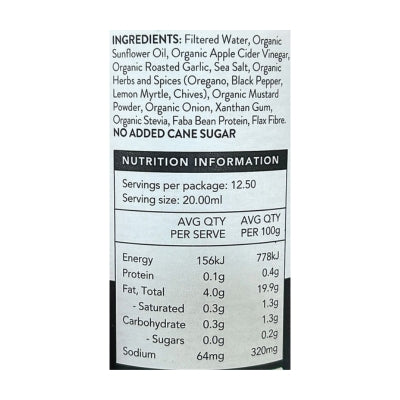 {"id":9848474501416,"title":"Ozganics Creamy Ranch Dressing 250ml","handle":"ozganics-creamy-ranch-dressing-250ml","description":"\u003cp\u003e \u003c\/p\u003e\n\u003c!-- TABS --\u003e\n\u003ch5\u003eReviews\u003c\/h5\u003e\n\u003cp\u003eReviews go here\u003c\/p\u003e\n\u003ch5\u003eIngredients\u003c\/h5\u003e\n\u003cp\u003eAny images, tags, filters, product categories, and any other information on this website showing ingredients, nutrition panels, or allergy statements are for guidance only, as manufacturers often change their formulations without notice. Please contact the manufacturer for the most up-to-date ingredient information, or email us to confirm the ingredients of the stock currently on hand.\u003c\/p\u003e\n\u003c!-- \/TABS --\u003e","published_at":"2025-10-13T13:27:06+11:00","created_at":"2025-10-13T13:27:05+11:00","vendor":"Ozganics","type":"Food (GST Free)","tags":["Dressings","Sydney Store"],"price":810,"price_min":810,"price_max":810,"available":true,"price_varies":false,"compare_at_price":null,"compare_at_price_min":0,"compare_at_price_max":0,"compare_at_price_varies":false,"variants":[{"id":50826274734376,"title":"Default Title","option1":"Default Title","option2":null,"option3":null,"sku":"9327304000071","requires_shipping":true,"taxable":false,"featured_image":null,"available":true,"name":"Ozganics Creamy Ranch Dressing 250ml","public_title":null,"options":["Default Title"],"price":810,"weight":0,"compare_at_price":null,"inventory_quantity":2,"inventory_management":"shopify","inventory_policy":"deny","barcode":null,"requires_selling_plan":false,"selling_plan_allocations":[]}],"images":["\/\/www.crueltyfreeshop.com.au\/cdn\/shop\/files\/OZG_Creamy-Ranch_b7d098c2-abdd-4990-836d-8e08f81b815d.jpg?v=1760322428","\/\/www.crueltyfreeshop.com.au\/cdn\/shop\/files\/OzganicsCreamyRanch-NutritionalInformation.jpg?v=1764740912"],"featured_image":"\/\/www.crueltyfreeshop.com.au\/cdn\/shop\/files\/OZG_Creamy-Ranch_b7d098c2-abdd-4990-836d-8e08f81b815d.jpg?v=1760322428","options":["Title"],"media":[{"alt":null,"id":42703677391144,"position":1,"preview_image":{"aspect_ratio":1.0,"height":800,"width":800,"src":"\/\/www.crueltyfreeshop.com.au\/cdn\/shop\/files\/OZG_Creamy-Ranch_b7d098c2-abdd-4990-836d-8e08f81b815d.jpg?v=1760322428"},"aspect_ratio":1.0,"height":800,"media_type":"image","src":"\/\/www.crueltyfreeshop.com.au\/cdn\/shop\/files\/OZG_Creamy-Ranch_b7d098c2-abdd-4990-836d-8e08f81b815d.jpg?v=1760322428","width":800},{"alt":null,"id":43122778636584,"position":2,"preview_image":{"aspect_ratio":1.0,"height":400,"width":400,"src":"\/\/www.crueltyfreeshop.com.au\/cdn\/shop\/files\/OzganicsCreamyRanch-NutritionalInformation.jpg?v=1764740912"},"aspect_ratio":1.0,"height":400,"media_type":"image","src":"\/\/www.crueltyfreeshop.com.au\/cdn\/shop\/files\/OzganicsCreamyRanch-NutritionalInformation.jpg?v=1764740912","width":400}],"requires_selling_plan":false,"selling_plan_groups":[],"content":"\u003cp\u003e \u003c\/p\u003e\n\u003c!-- TABS --\u003e\n\u003ch5\u003eReviews\u003c\/h5\u003e\n\u003cp\u003eReviews go here\u003c\/p\u003e\n\u003ch5\u003eIngredients\u003c\/h5\u003e\n\u003cp\u003eAny images, tags, filters, product categories, and any other information on this website showing ingredients, nutrition panels, or allergy statements are for guidance only, as manufacturers often change their formulations without notice. Please contact the manufacturer for the most up-to-date ingredient information, or email us to confirm the ingredients of the stock currently on hand.\u003c\/p\u003e\n\u003c!-- \/TABS --\u003e"}