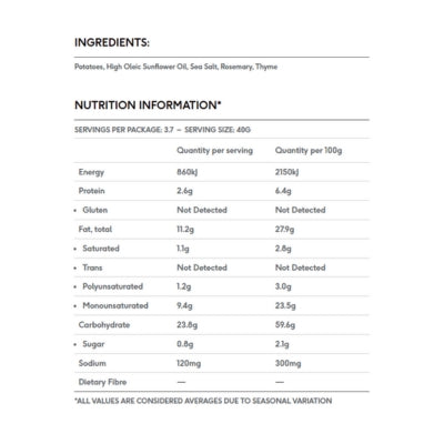 {"id":9700039033128,"title":"Proper Crisps Rosemary \u0026 Thyme 150g","handle":"proper-core-rosemary-thyme-40g","description":"\u003cp\u003e \u003c\/p\u003e\n\u003ch5\u003eReviews\u003c\/h5\u003e\n\u003cp\u003eReviews go here\u003c\/p\u003e\n\u003ch5\u003eIngredients\u003c\/h5\u003e\n\u003cp\u003eAny images, tags, filters, product categories, and any other information on this website showing ingredients, nutrition panels, or allergy statements are for guidance only, as manufacturers often change their formulations without notice. Please contact the manufacturer for the most up-to-date ingredient information, or email us to confirm the ingredients of the stock currently on hand.\u003c\/p\u003e","published_at":"2025-07-08T15:57:13+10:00","created_at":"2025-07-08T15:57:13+10:00","vendor":"Proper Crisps","type":"","tags":["Crisps","Sydney Store"],"price":699,"price_min":699,"price_max":699,"available":true,"price_varies":false,"compare_at_price":null,"compare_at_price_min":0,"compare_at_price_max":0,"compare_at_price_varies":false,"variants":[{"id":50361546244392,"title":"Default Title","option1":"Default Title","option2":null,"option3":null,"sku":"09421901659035","requires_shipping":true,"taxable":true,"featured_image":null,"available":true,"name":"Proper Crisps Rosemary \u0026 Thyme 150g","public_title":null,"options":["Default Title"],"price":699,"weight":0,"compare_at_price":null,"inventory_quantity":5,"inventory_management":"shopify","inventory_policy":"deny","barcode":null,"requires_selling_plan":false,"selling_plan_allocations":[]}],"images":["\/\/www.crueltyfreeshop.com.au\/cdn\/shop\/files\/ProperCrispsRosemary_Thyme150g.png?v=1764728684","\/\/www.crueltyfreeshop.com.au\/cdn\/shop\/files\/ProperRosemary_Thyme-NutritionalInfo.jpg?v=1768344480"],"featured_image":"\/\/www.crueltyfreeshop.com.au\/cdn\/shop\/files\/ProperCrispsRosemary_Thyme150g.png?v=1764728684","options":["Title"],"media":[{"alt":null,"id":43121743823144,"position":1,"preview_image":{"aspect_ratio":1.0,"height":800,"width":800,"src":"\/\/www.crueltyfreeshop.com.au\/cdn\/shop\/files\/ProperCrispsRosemary_Thyme150g.png?v=1764728684"},"aspect_ratio":1.0,"height":800,"media_type":"image","src":"\/\/www.crueltyfreeshop.com.au\/cdn\/shop\/files\/ProperCrispsRosemary_Thyme150g.png?v=1764728684","width":800},{"alt":null,"id":43302490931496,"position":2,"preview_image":{"aspect_ratio":1.0,"height":400,"width":400,"src":"\/\/www.crueltyfreeshop.com.au\/cdn\/shop\/files\/ProperRosemary_Thyme-NutritionalInfo.jpg?v=1768344480"},"aspect_ratio":1.0,"height":400,"media_type":"image","src":"\/\/www.crueltyfreeshop.com.au\/cdn\/shop\/files\/ProperRosemary_Thyme-NutritionalInfo.jpg?v=1768344480","width":400}],"requires_selling_plan":false,"selling_plan_groups":[],"content":"\u003cp\u003e \u003c\/p\u003e\n\u003ch5\u003eReviews\u003c\/h5\u003e\n\u003cp\u003eReviews go here\u003c\/p\u003e\n\u003ch5\u003eIngredients\u003c\/h5\u003e\n\u003cp\u003eAny images, tags, filters, product categories, and any other information on this website showing ingredients, nutrition panels, or allergy statements are for guidance only, as manufacturers often change their formulations without notice. Please contact the manufacturer for the most up-to-date ingredient information, or email us to confirm the ingredients of the stock currently on hand.\u003c\/p\u003e"}