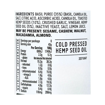 Roza's Basil Pesto with Toasted Hemp Seeds & Hemp Seed Oil 240ml (cold)