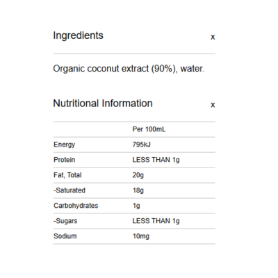 {"id":9486876475688,"title":"Spiral Foods Organic Coconut - Cream 400ml","handle":"spiral-foods-organic-coconut-cream-400ml","description":"\u003cp\u003e \u003c\/p\u003e\n\u003ch5\u003eReviews\u003c\/h5\u003e\n\u003cp\u003eReviews go here\u003c\/p\u003e\n\u003ch5\u003eIngredients\u003c\/h5\u003e\n\u003cp\u003eAny images, tags, filters, product categories, and any other information on this website showing ingredients, nutrition panels, or allergy statements are for guidance only, as manufacturers often change their formulations without notice. Please contact the manufacturer for the most up-to-date ingredient information, or email us to confirm the ingredients of the stock currently on hand.\u003c\/p\u003e","published_at":"2025-03-05T12:37:24+11:00","created_at":"2024-11-07T16:23:41+11:00","vendor":"Spiral Foods","type":"General","tags":["Cooking Sauces","Cream","Sydney Store"],"price":349,"price_min":349,"price_max":349,"available":true,"price_varies":false,"compare_at_price":null,"compare_at_price_min":0,"compare_at_price_max":0,"compare_at_price_varies":false,"variants":[{"id":49487057158440,"title":"Default Title","option1":"Default Title","option2":null,"option3":null,"sku":"9312336270011","requires_shipping":true,"taxable":false,"featured_image":null,"available":true,"name":"Spiral Foods Organic Coconut - Cream 400ml","public_title":null,"options":["Default Title"],"price":349,"weight":0,"compare_at_price":null,"inventory_quantity":5,"inventory_management":"shopify","inventory_policy":"deny","barcode":null,"requires_selling_plan":false,"selling_plan_allocations":[]}],"images":["\/\/www.crueltyfreeshop.com.au\/cdn\/shop\/files\/Spiral_Coconut_Cream_400mL_Front_2000x2000px.jpg?v=1730957021","\/\/www.crueltyfreeshop.com.au\/cdn\/shop\/files\/SpiralCoconutCream-NutritionalInformation.png?v=1764551025"],"featured_image":"\/\/www.crueltyfreeshop.com.au\/cdn\/shop\/files\/Spiral_Coconut_Cream_400mL_Front_2000x2000px.jpg?v=1730957021","options":["Title"],"media":[{"alt":null,"id":40433885708584,"position":1,"preview_image":{"aspect_ratio":1.0,"height":2000,"width":2000,"src":"\/\/www.crueltyfreeshop.com.au\/cdn\/shop\/files\/Spiral_Coconut_Cream_400mL_Front_2000x2000px.jpg?v=1730957021"},"aspect_ratio":1.0,"height":2000,"media_type":"image","src":"\/\/www.crueltyfreeshop.com.au\/cdn\/shop\/files\/Spiral_Coconut_Cream_400mL_Front_2000x2000px.jpg?v=1730957021","width":2000},{"alt":null,"id":43111950483752,"position":2,"preview_image":{"aspect_ratio":1.0,"height":400,"width":400,"src":"\/\/www.crueltyfreeshop.com.au\/cdn\/shop\/files\/SpiralCoconutCream-NutritionalInformation.png?v=1764551025"},"aspect_ratio":1.0,"height":400,"media_type":"image","src":"\/\/www.crueltyfreeshop.com.au\/cdn\/shop\/files\/SpiralCoconutCream-NutritionalInformation.png?v=1764551025","width":400}],"requires_selling_plan":false,"selling_plan_groups":[],"content":"\u003cp\u003e \u003c\/p\u003e\n\u003ch5\u003eReviews\u003c\/h5\u003e\n\u003cp\u003eReviews go here\u003c\/p\u003e\n\u003ch5\u003eIngredients\u003c\/h5\u003e\n\u003cp\u003eAny images, tags, filters, product categories, and any other information on this website showing ingredients, nutrition panels, or allergy statements are for guidance only, as manufacturers often change their formulations without notice. Please contact the manufacturer for the most up-to-date ingredient information, or email us to confirm the ingredients of the stock currently on hand.\u003c\/p\u003e"}