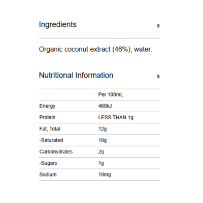 {"id":9486876705064,"title":"Spiral Foods Organic Coconut - Reduced Fat Milk 400ml","handle":"spiral-foods-organic-coconut-reduced-fat-milk-400ml","description":"\u003cp\u003e \u003c\/p\u003e\n\u003ch5\u003eReviews\u003c\/h5\u003e\n\u003cp\u003eReviews go here\u003c\/p\u003e\n\u003ch5\u003eIngredients\u003c\/h5\u003e\n\u003cp\u003eAny images, tags, filters, product categories, and any other information on this website showing ingredients, nutrition panels, or allergy statements are for guidance only, as manufacturers often change their formulations without notice. Please contact the manufacturer for the most up-to-date ingredient information, or email us to confirm the ingredients of the stock currently on hand.\u003c\/p\u003e","published_at":"2025-03-05T12:37:54+11:00","created_at":"2024-11-07T16:25:32+11:00","vendor":"Spiral Foods","type":"General","tags":["Cooking Sauces","Milk","Sydney Store"],"price":299,"price_min":299,"price_max":299,"available":true,"price_varies":false,"compare_at_price":null,"compare_at_price_min":0,"compare_at_price_max":0,"compare_at_price_varies":false,"variants":[{"id":49487058501928,"title":"Default Title","option1":"Default Title","option2":null,"option3":null,"sku":"9312336275016","requires_shipping":true,"taxable":false,"featured_image":null,"available":true,"name":"Spiral Foods Organic Coconut - Reduced Fat Milk 400ml","public_title":null,"options":["Default Title"],"price":299,"weight":0,"compare_at_price":null,"inventory_quantity":5,"inventory_management":"shopify","inventory_policy":"deny","barcode":null,"requires_selling_plan":false,"selling_plan_allocations":[]}],"images":["\/\/www.crueltyfreeshop.com.au\/cdn\/shop\/files\/Spiral_Coconut_Milk_400mL_Front_2000x2000px.jpg?v=1730957132","\/\/www.crueltyfreeshop.com.au\/cdn\/shop\/files\/SpiralCoconutMilk-NutritionalInformation_2.png?v=1764551004"],"featured_image":"\/\/www.crueltyfreeshop.com.au\/cdn\/shop\/files\/Spiral_Coconut_Milk_400mL_Front_2000x2000px.jpg?v=1730957132","options":["Title"],"media":[{"alt":null,"id":40433891475752,"position":1,"preview_image":{"aspect_ratio":1.0,"height":2000,"width":2000,"src":"\/\/www.crueltyfreeshop.com.au\/cdn\/shop\/files\/Spiral_Coconut_Milk_400mL_Front_2000x2000px.jpg?v=1730957132"},"aspect_ratio":1.0,"height":2000,"media_type":"image","src":"\/\/www.crueltyfreeshop.com.au\/cdn\/shop\/files\/Spiral_Coconut_Milk_400mL_Front_2000x2000px.jpg?v=1730957132","width":2000},{"alt":null,"id":43111950025000,"position":2,"preview_image":{"aspect_ratio":1.0,"height":400,"width":400,"src":"\/\/www.crueltyfreeshop.com.au\/cdn\/shop\/files\/SpiralCoconutMilk-NutritionalInformation_2.png?v=1764551004"},"aspect_ratio":1.0,"height":400,"media_type":"image","src":"\/\/www.crueltyfreeshop.com.au\/cdn\/shop\/files\/SpiralCoconutMilk-NutritionalInformation_2.png?v=1764551004","width":400}],"requires_selling_plan":false,"selling_plan_groups":[],"content":"\u003cp\u003e \u003c\/p\u003e\n\u003ch5\u003eReviews\u003c\/h5\u003e\n\u003cp\u003eReviews go here\u003c\/p\u003e\n\u003ch5\u003eIngredients\u003c\/h5\u003e\n\u003cp\u003eAny images, tags, filters, product categories, and any other information on this website showing ingredients, nutrition panels, or allergy statements are for guidance only, as manufacturers often change their formulations without notice. Please contact the manufacturer for the most up-to-date ingredient information, or email us to confirm the ingredients of the stock currently on hand.\u003c\/p\u003e"}