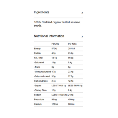 {"id":9486881063208,"title":"Spiral Foods Tahini - Hulled Organic 375g","handle":"spiral-foods-tahini-hulled-organic-375g","description":"\u003cp\u003e \u003c\/p\u003e\n\u003ch5\u003eReviews\u003c\/h5\u003e\n\u003cp\u003eReviews go here\u003c\/p\u003e\n\u003ch5\u003eIngredients\u003c\/h5\u003e\n\u003cp\u003eAny images, tags, filters, product categories, and any other information on this website showing ingredients, nutrition panels, or allergy statements are for guidance only, as manufacturers often change their formulations without notice. Please contact the manufacturer for the most up-to-date ingredient information, or email us to confirm the ingredients of the stock currently on hand.\u003c\/p\u003e","published_at":"2025-03-05T12:37:53+11:00","created_at":"2024-11-07T17:04:19+11:00","vendor":"Spiral Foods","type":"General","tags":["Cooking Pastes","Dressings","Sydney Store"],"price":1073,"price_min":1073,"price_max":1073,"available":true,"price_varies":false,"compare_at_price":null,"compare_at_price_min":0,"compare_at_price_max":0,"compare_at_price_varies":false,"variants":[{"id":49487111618856,"title":"Default Title","option1":"Default Title","option2":null,"option3":null,"sku":"9312336782002","requires_shipping":true,"taxable":false,"featured_image":null,"available":true,"name":"Spiral Foods Tahini - Hulled Organic 375g","public_title":null,"options":["Default Title"],"price":1073,"weight":0,"compare_at_price":null,"inventory_quantity":3,"inventory_management":"shopify","inventory_policy":"deny","barcode":null,"requires_selling_plan":false,"selling_plan_allocations":[]}],"images":["\/\/www.crueltyfreeshop.com.au\/cdn\/shop\/files\/Spiral-Hulled_Tahini.jpg?v=1730959459","\/\/www.crueltyfreeshop.com.au\/cdn\/shop\/files\/SpiralHulledTahini-NutritionalInformation.png?v=1764551190"],"featured_image":"\/\/www.crueltyfreeshop.com.au\/cdn\/shop\/files\/Spiral-Hulled_Tahini.jpg?v=1730959459","options":["Title"],"media":[{"alt":null,"id":40433994301736,"position":1,"preview_image":{"aspect_ratio":1.0,"height":2000,"width":2000,"src":"\/\/www.crueltyfreeshop.com.au\/cdn\/shop\/files\/Spiral-Hulled_Tahini.jpg?v=1730959459"},"aspect_ratio":1.0,"height":2000,"media_type":"image","src":"\/\/www.crueltyfreeshop.com.au\/cdn\/shop\/files\/Spiral-Hulled_Tahini.jpg?v=1730959459","width":2000},{"alt":null,"id":43111959036200,"position":2,"preview_image":{"aspect_ratio":1.0,"height":400,"width":400,"src":"\/\/www.crueltyfreeshop.com.au\/cdn\/shop\/files\/SpiralHulledTahini-NutritionalInformation.png?v=1764551190"},"aspect_ratio":1.0,"height":400,"media_type":"image","src":"\/\/www.crueltyfreeshop.com.au\/cdn\/shop\/files\/SpiralHulledTahini-NutritionalInformation.png?v=1764551190","width":400}],"requires_selling_plan":false,"selling_plan_groups":[],"content":"\u003cp\u003e \u003c\/p\u003e\n\u003ch5\u003eReviews\u003c\/h5\u003e\n\u003cp\u003eReviews go here\u003c\/p\u003e\n\u003ch5\u003eIngredients\u003c\/h5\u003e\n\u003cp\u003eAny images, tags, filters, product categories, and any other information on this website showing ingredients, nutrition panels, or allergy statements are for guidance only, as manufacturers often change their formulations without notice. Please contact the manufacturer for the most up-to-date ingredient information, or email us to confirm the ingredients of the stock currently on hand.\u003c\/p\u003e"}