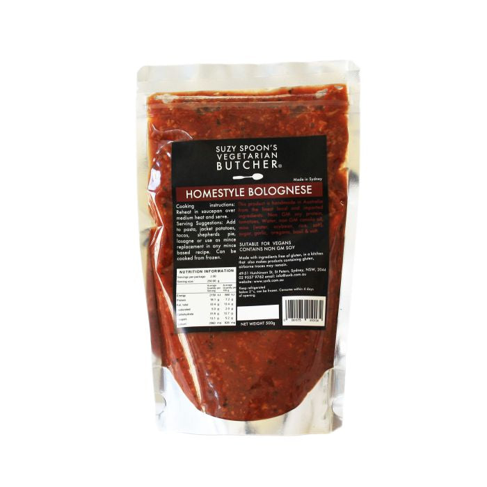 {"id":9848478957864,"title":"Suzy Spoons Bolognese Sauce 500g (cold)","handle":"suzyspoonsbolognesesauce500g","description":"\u003cp\u003eWho doesn’t love a nice hot bowl of Spaghetti Bolognese. This classic Bolognese is a take on one of the Spoon family favourites. Vegan mince with the perfect blend of tomatoes and herbs. Add it to pasta, jacket potatoes, tacos, shepherd’s pie or lasagne. Approx 2 serves. Handmade in Sydney.\u003c\/p\u003e\n\u003ch5\u003eReviews\u003c\/h5\u003e\n\u003cp\u003eReviews go here\u003c\/p\u003e\n\u003ch5\u003eIngredients\u003c\/h5\u003e\n\u003cp\u003eAny images, tags, filters, product categories, and any other information on this website showing ingredients, nutrition panels, or allergy statements are for guidance only, as manufacturers often change their formulations without notice. Please contact the manufacturer for the most up-to-date ingredient information, or email us to confirm the ingredients of the stock currently on hand.\u003c\/p\u003e\n\u003ch5\u003eImportant Shipping Note\u003c\/h5\u003e\n\u003cdiv\u003e\n\u003cspan\u003eAll orders containing chilled products, frozen products and chocolates must include a Cooler to protect them in transit. The\u003c\/span\u003e\u003cspan\u003e \u003c\/span\u003e\u003cspan\u003eCooler\u003c\/span\u003e\u003cspan\u003e will automatically add to your order when a cold product is added to your shopping cart. \u003c\/span\u003e\u003cspan\u003eFrozen items may defrost in transit, we can not recommend re-freezing. \u003c\/span\u003e\u003cspan\u003eWe will select the correct size cooler for your order. Chilled orders can only be sent to certain areas, please refer to our \u003c\/span\u003e\u003ca href=\"https:\/\/www.crueltyfreeshop.com.au\/pages\/faq#refrid\" rel=\"noopener\" target=\"_blank\" data-saferedirecturl=\"https:\/\/www.google.com\/url?q=https:\/\/www.crueltyfreeshop.com.au\/pages\/faq%23refrid\u0026amp;source=gmail\u0026amp;ust=1664430462005000\u0026amp;usg=AOvVaw3YpBIvhTwoxQRA_PVqbP_L\"\u003eFAQ\u003c\/a\u003e\u003cspan\u003e or email us at \u003c\/span\u003e\u003ca href=\"mailto:online@vegangrocerystore.com.au\" rel=\"noopener\" target=\"_blank\"\u003eonline@vegangrocerystore.\u003cwbr\u003ecom.au\u003c\/wbr\u003e\u003c\/a\u003e\n\u003c\/div\u003e","published_at":"2025-10-13T13:54:49+11:00","created_at":"2025-10-13T13:54:48+11:00","vendor":"Suzy Spoons","type":"Refrig food (GST Free)","tags":["Cooking Sauces","Mince","Sydney Store"],"price":1290,"price_min":1290,"price_max":1290,"available":true,"price_varies":false,"compare_at_price":null,"compare_at_price_min":0,"compare_at_price_max":0,"compare_at_price_varies":false,"variants":[{"id":50826292789544,"title":"Default Title","option1":"Default Title","option2":null,"option3":null,"sku":"081175910134","requires_shipping":true,"taxable":false,"featured_image":null,"available":true,"name":"Suzy Spoons Bolognese Sauce 500g (cold)","public_title":null,"options":["Default Title"],"price":1290,"weight":500,"compare_at_price":null,"inventory_quantity":4,"inventory_management":"shopify","inventory_policy":"deny","barcode":null,"requires_selling_plan":false,"selling_plan_allocations":[]}],"images":["\/\/www.crueltyfreeshop.com.au\/cdn\/shop\/files\/SZSP1090R.jpg?v=1765854689","\/\/www.crueltyfreeshop.com.au\/cdn\/shop\/files\/suzybolognese-NutritionalInfo.jpg?v=1765854689","\/\/www.crueltyfreeshop.com.au\/cdn\/shop\/files\/suzybolognese-ingredients.jpg?v=1765854689"],"featured_image":"\/\/www.crueltyfreeshop.com.au\/cdn\/shop\/files\/SZSP1090R.jpg?v=1765854689","options":["Title"],"media":[{"alt":null,"id":43185920573736,"position":1,"preview_image":{"aspect_ratio":1.0,"height":700,"width":700,"src":"\/\/www.crueltyfreeshop.com.au\/cdn\/shop\/files\/SZSP1090R.jpg?v=1765854689"},"aspect_ratio":1.0,"height":700,"media_type":"image","src":"\/\/www.crueltyfreeshop.com.au\/cdn\/shop\/files\/SZSP1090R.jpg?v=1765854689","width":700},{"alt":null,"id":43020491489576,"position":2,"preview_image":{"aspect_ratio":1.0,"height":400,"width":400,"src":"\/\/www.crueltyfreeshop.com.au\/cdn\/shop\/files\/suzybolognese-NutritionalInfo.jpg?v=1765854689"},"aspect_ratio":1.0,"height":400,"media_type":"image","src":"\/\/www.crueltyfreeshop.com.au\/cdn\/shop\/files\/suzybolognese-NutritionalInfo.jpg?v=1765854689","width":400},{"alt":null,"id":43020491522344,"position":3,"preview_image":{"aspect_ratio":1.0,"height":400,"width":400,"src":"\/\/www.crueltyfreeshop.com.au\/cdn\/shop\/files\/suzybolognese-ingredients.jpg?v=1765854689"},"aspect_ratio":1.0,"height":400,"media_type":"image","src":"\/\/www.crueltyfreeshop.com.au\/cdn\/shop\/files\/suzybolognese-ingredients.jpg?v=1765854689","width":400}],"requires_selling_plan":false,"selling_plan_groups":[],"content":"\u003cp\u003eWho doesn’t love a nice hot bowl of Spaghetti Bolognese. This classic Bolognese is a take on one of the Spoon family favourites. Vegan mince with the perfect blend of tomatoes and herbs. Add it to pasta, jacket potatoes, tacos, shepherd’s pie or lasagne. Approx 2 serves. Handmade in Sydney.\u003c\/p\u003e\n\u003ch5\u003eReviews\u003c\/h5\u003e\n\u003cp\u003eReviews go here\u003c\/p\u003e\n\u003ch5\u003eIngredients\u003c\/h5\u003e\n\u003cp\u003eAny images, tags, filters, product categories, and any other information on this website showing ingredients, nutrition panels, or allergy statements are for guidance only, as manufacturers often change their formulations without notice. Please contact the manufacturer for the most up-to-date ingredient information, or email us to confirm the ingredients of the stock currently on hand.\u003c\/p\u003e\n\u003ch5\u003eImportant Shipping Note\u003c\/h5\u003e\n\u003cdiv\u003e\n\u003cspan\u003eAll orders containing chilled products, frozen products and chocolates must include a Cooler to protect them in transit. The\u003c\/span\u003e\u003cspan\u003e \u003c\/span\u003e\u003cspan\u003eCooler\u003c\/span\u003e\u003cspan\u003e will automatically add to your order when a cold product is