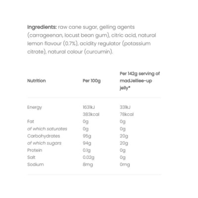 {"id":9701089837352,"title":"Just Wholefood Jelly Crystals - Lemon 85g","handle":"tbdjust-wholefoods-jelly-lemon","description":"\u003cp\u003eLemon flavoured jelly crystals that contain no gelatine and no artificial colours, flavours or preservatives. \u003c!-- TABS --\u003e\u003c\/p\u003e\n\u003ch5\u003eReviews\u003c\/h5\u003e\n\u003cp\u003eReviews go here\u003c\/p\u003e\n\u003ch5\u003eIngredients\u003c\/h5\u003e\n\u003cp\u003eAny images, tags, filters, product categories, and any other information on this website showing ingredients, nutrition panels, or allergy statements are for guidance only, as manufacturers often change their formulations without notice. Please contact the manufacturer for the most up-to-date ingredient information, or email us to confirm the ingredients of the stock currently on hand.\u003c\/p\u003e\n\u003cp\u003e\u003c!-- \/TABS --\u003e\u003c\/p\u003e","published_at":"2025-10-26T13:51:55+11:00","created_at":"2025-07-09T09:32:52+10:00","vendor":"Just Wholefood","type":"Food (GST Free)","tags":["Jelly","Sydney Store"],"price":463,"price_min":463,"price_max":463,"available":true,"price_varies":false,"compare_at_price":null,"compare_at_price_min":0,"compare_at_price_max":0,"compare_at_price_varies":false,"variants":[{"id":50366147887400,"title":"Default Title","option1":"Default Title","option2":null,"option3":null,"sku":"5022775000233","requires_shipping":true,"taxable":false,"featured_image":null,"available":true,"name":"Just Wholefood Jelly Crystals - Lemon 85g","public_title":null,"options":["Default Title"],"price":463,"weight":0,"compare_at_price":null,"inventory_quantity":8,"inventory_management":"shopify","inventory_policy":"deny","barcode":null,"requires_selling_plan":false,"selling_plan_allocations":[]}],"images":["\/\/www.crueltyfreeshop.com.au\/cdn\/shop\/files\/LemonJelly.png?v=1763428027","\/\/www.crueltyfreeshop.com.au\/cdn\/shop\/files\/JustwholefoodsLEMON-NutritionalInfo.jpg?v=1764109183"],"featured_image":"\/\/www.crueltyfreeshop.com.au\/cdn\/shop\/files\/LemonJelly.png?v=1763428027","options":["Title"],"media":[{"alt":null,"id":42999664902440,"position":1,"preview_image":{"aspect_ratio":1.0,"height":620,"width":620,"src":"\/\/www.crueltyfreeshop.com.au\/cdn\/shop\/files\/LemonJelly.png?v=1763428027"},"aspect_ratio":1.0,"height":620,"media_type":"image","src":"\/\/www.crueltyfreeshop.com.au\/cdn\/shop\/files\/LemonJelly.png?v=1763428027","width":620},{"alt":null,"id":43070744822056,"position":2,"preview_image":{"aspect_ratio":1.0,"height":400,"width":400,"src":"\/\/www.crueltyfreeshop.com.au\/cdn\/shop\/files\/JustwholefoodsLEMON-NutritionalInfo.jpg?v=1764109183"},"aspect_ratio":1.0,"height":400,"media_type":"image","src":"\/\/www.crueltyfreeshop.com.au\/cdn\/shop\/files\/JustwholefoodsLEMON-NutritionalInfo.jpg?v=1764109183","width":400}],"requires_selling_plan":false,"selling_plan_groups":[],"content":"\u003cp\u003eLemon flavoured jelly crystals that contain no gelatine and no artificial colours, flavours or preservatives. \u003c!-- TABS --\u003e\u003c\/p\u003e\n\u003ch5\u003eReviews\u003c\/h5\u003e\n\u003cp\u003eReviews go here\u003c\/p\u003e\n\u003ch5\u003eIngredients\u003c\/h5\u003e\n\u003cp\u003eAny images, tags, filters, product categories, and any other information on this website showing ingredients, nutrition panels, or allergy statements are for guidance only, as manufacturers often change their formulations without notice. Please contact the manufacturer for the most up-to-date ingredient information, or email us to confirm the ingredients of the stock currently on hand.\u003c\/p\u003e\n\u003cp\u003e\u003c!-- \/TABS --\u003e\u003c\/p\u003e"}