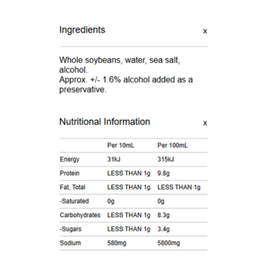 {"id":9488119857448,"title":"Spiral Foods Sauce - Tamari Sauce Genuine 250ml","handle":"tbdspiralfoodstamarisauce-case-6","description":"\u003cp\u003eUse as a dipping sauce for sushi and sashimi, teriyaki or as a seasoning for crackers or steamed dishes.\u003c\/p\u003e\n\u003cp\u003eTamari (Wheat Free) is a traditional whole food made from the liquid that exudes from soybean miso when it ferments. Tamari has a stronger taste and aroma as well as a thick rich texture. It is mainly produced in Aichi Prefecture, central western Japan, and has the same nutritional value as Shoyu. Commercial Tamaris are being made but we feel they do not reflect the taste of our real Traditional Tamari. Spiral Foods Tamari is made only as soy sauce not from miso.\u003c\/p\u003e\n\u003c!-- TABS --\u003e\n\u003ch5\u003eReviews\u003c\/h5\u003e\n\u003cp\u003eReviews go here\u003c\/p\u003e\n\u003ch5\u003eIngredients\u003c\/h5\u003e\n\u003cp\u003eAny images, tags, filters, product categories, and any other information on this website showing ingredients, nutrition panels, or allergy statements are for guidance only, as manufacturers often change their formulations without notice. Please contact the manufacturer for the most up-to-date ingredient information, or email us to confirm the ingredients of the stock currently on hand.\u003c\/p\u003e\n\u003c!-- \/TABS --\u003e","published_at":"2025-03-05T12:37:20+11:00","created_at":"2024-11-08T10:37:12+11:00","vendor":"Spiral Foods","type":"Food (GST Free)","tags":["Dressings","Savoury Sauces","Sydney Store"],"price":668,"price_min":668,"price_max":668,"available":true,"price_varies":false,"compare_at_price":null,"compare_at_price_min":0,"compare_at_price_max":0,"compare_at_price_varies":false,"variants":[{"id":49490890391848,"title":"Default Title","option1":"Default Title","option2":null,"option3":null,"sku":"9312336101117","requires_shipping":true,"taxable":false,"featured_image":null,"available":true,"name":"Spiral Foods Sauce - Tamari Sauce Genuine 250ml","public_title":null,"options":["Default Title"],"price":668,"weight":0,"compare_at_price":null,"inventory_quantity":2,"inventory_management":"shopify","inventory_policy":"deny","barcode":null,"requires_selling_plan":false,"selling_plan_allocations":[]}],"images":["\/\/www.crueltyfreeshop.com.au\/cdn\/shop\/files\/Spiral_Sauc_Tamari250_1.jpg?v=1731022632","\/\/www.crueltyfreeshop.com.au\/cdn\/shop\/files\/SpiralGenuineTamari-NutritionalInformation.png?v=1764552660"],"featured_image":"\/\/www.crueltyfreeshop.com.au\/cdn\/shop\/files\/Spiral_Sauc_Tamari250_1.jpg?v=1731022632","options":["Title"],"media":[{"alt":null,"id":40440135745832,"position":1,"preview_image":{"aspect_ratio":1.0,"height":2000,"width":2000,"src":"\/\/www.crueltyfreeshop.com.au\/cdn\/shop\/files\/Spiral_Sauc_Tamari250_1.jpg?v=1731022632"},"aspect_ratio":1.0,"height":2000,"media_type":"image","src":"\/\/www.crueltyfreeshop.com.au\/cdn\/shop\/files\/Spiral_Sauc_Tamari250_1.jpg?v=1731022632","width":2000},{"alt":null,"id":43112054358312,"position":2,"preview_image":{"aspect_ratio":1.0,"height":400,"width":400,"src":"\/\/www.crueltyfreeshop.com.au\/cdn\/shop\/files\/SpiralGenuineTamari-NutritionalInformation.png?v=1764552660"},"aspect_ratio":1.0,"height":400,"media_type":"image","src":"\/\/www.crueltyfreeshop.com.au\/cdn\/shop\/files\/SpiralGenuineTamari-NutritionalInformation.png?v=1764552660","width":400}],"requires_selling_plan":false,"selling_plan_groups":[],"content":"\u003cp\u003eUse as a dipping sauce for sushi and sashimi, teriyaki or as a seasoning for crackers or steamed dishes.\u003c\/p\u003e\n\u003cp\u003eTamari (Wheat Free) is a traditional whole food made from the liquid that exudes from soybean miso when it ferments. Tamari has a stronger taste and aroma as well as a thick rich texture. It is mainly produced in Aichi Prefecture, central western Japan, and has the same nutritional value as Shoyu. Commercial Tamaris are being made but we feel they do not reflect the taste of our real Traditional Tamari. Spiral Foods Tamari is made only as soy sauce not from miso.\u003c\/p\u003e\n\u003c!-- TABS --\u003e\n\u003ch5\u003eReviews\u003c\/h5\u003e\n\u003cp\u003eReviews go here\u003c\/p\u003e\n\u003ch5\u003eIngredients\u003c\/h5\u003e\n\u003cp\u003eAny images, tags, filters, product categories, and any other information on this website showing ingredients, nutrition panels, or allergy statements are for guidance only, as manufacturers often change their formulations without notice. Please contact the manufacturer for the most up-to-date ingredient information, or email us to confirm the ingredients of the stock currently on hand.\u003c\/p\u003e\n\u003c!-- \/TABS --\u003e"}