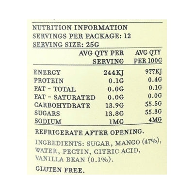 {"id":9479524385064,"title":"Yarra Valley Preserves - Jam Mango \u0026 Vanilla Bean 300g","handle":"yarra-valley-preserves-jam-mango-and-vanilla-bean-300g","description":"\u003cp\u003e \u003c\/p\u003e\n\u003ch5\u003eReviews\u003c\/h5\u003e\n\u003cp\u003eReviews go here\u003c\/p\u003e\n\u003ch5\u003eIngredients\u003c\/h5\u003e\n\u003cp\u003eAny images, tags, filters, product categories, and any other information on this website showing ingredients, nutrition panels, or allergy statements are for guidance only, as manufacturers often change their formulations without notice. Please contact the manufacturer for the most up-to-date ingredient information, or email us to confirm the ingredients of the stock currently on hand.\u003c\/p\u003e","published_at":"2025-11-19T11:22:08+11:00","created_at":"2024-10-28T15:34:11+11:00","vendor":"Yarra Valley","type":"General","tags":["Jam","Sydney Store"],"price":1043,"price_min":1043,"price_max":1043,"available":true,"price_varies":false,"compare_at_price":null,"compare_at_price_min":0,"compare_at_price_max":0,"compare_at_price_varies":false,"variants":[{"id":49444823007528,"title":"Default Title","option1":"Default Title","option2":null,"option3":null,"sku":"9328596001951","requires_shipping":true,"taxable":false,"featured_image":null,"available":true,"name":"Yarra Valley Preserves - Jam Mango \u0026 Vanilla Bean 300g","public_title":null,"options":["Default Title"],"price":1043,"weight":0,"compare_at_price":null,"inventory_quantity":6,"inventory_management":"shopify","inventory_policy":"deny","barcode":null,"requires_selling_plan":false,"selling_plan_allocations":[]}],"images":["\/\/www.crueltyfreeshop.com.au\/cdn\/shop\/files\/YRGM1060R.jpg?v=1764546290","\/\/www.crueltyfreeshop.com.au\/cdn\/shop\/files\/YarraMangoVanillaJam-NutritionalInformation.jpg?v=1764725899"],"featured_image":"\/\/www.crueltyfreeshop.com.au\/cdn\/shop\/files\/YRGM1060R.jpg?v=1764546290","options":["Title"],"media":[{"alt":null,"id":43111633355048,"position":1,"preview_image":{"aspect_ratio":1.0,"height":400,"width":400,"src":"\/\/www.crueltyfreeshop.com.au\/cdn\/shop\/files\/YRGM1060R.jpg?v=1764546290"},"aspect_ratio":1.0,"height":400,"media_type":"image","src":"\/\/www.crueltyfreeshop.com.au\/cdn\/shop\/files\/YRGM1060R.jpg?v=1764546290","width":400},{"alt":null,"id":43121572675880,"position":2,"preview_image":{"aspect_ratio":1.0,"height":400,"width":400,"src":"\/\/www.crueltyfreeshop.com.au\/cdn\/shop\/files\/YarraMangoVanillaJam-NutritionalInformation.jpg?v=1764725899"},"aspect_ratio":1.0,"height":400,"media_type":"image","src":"\/\/www.crueltyfreeshop.com.au\/cdn\/shop\/files\/YarraMangoVanillaJam-NutritionalInformation.jpg?v=1764725899","width":400}],"requires_selling_plan":false,"selling_plan_groups":[],"content":"\u003cp\u003e \u003c\/p\u003e\n\u003ch5\u003eReviews\u003c\/h5\u003e\n\u003cp\u003eReviews go here\u003c\/p\u003e\n\u003ch5\u003eIngredients\u003c\/h5\u003e\n\u003cp\u003eAny images, tags, filters, product categories, and any other information on this website showing ingredients, nutrition panels, or allergy statements are for guidance only, as manufacturers often change their formulations without notice. Please contact the manufacturer for the most up-to-date ingredient information, or email us to confirm the ingredients of the stock currently on hand.\u003c\/p\u003e"}
